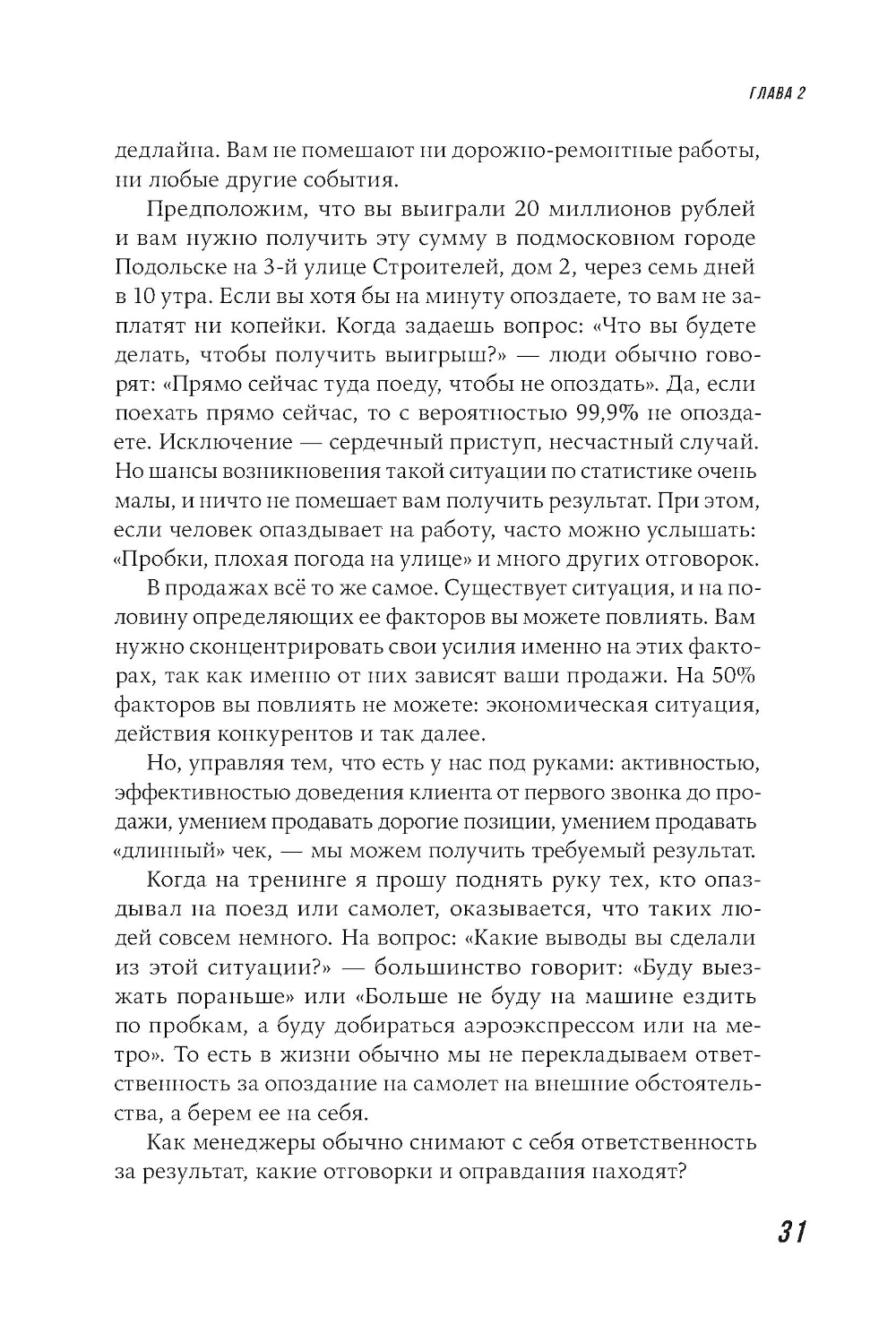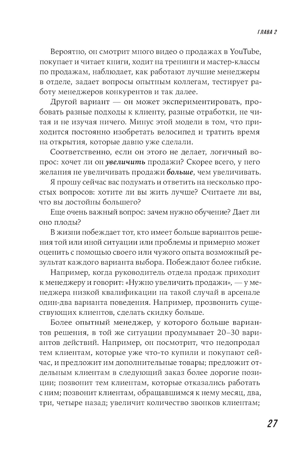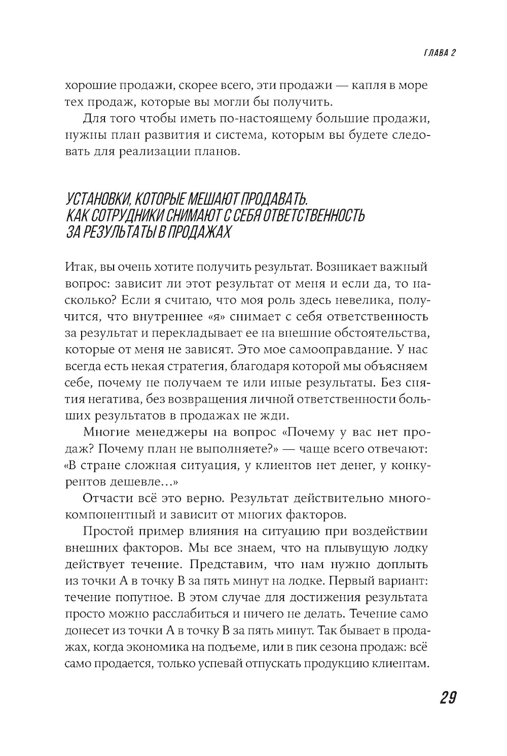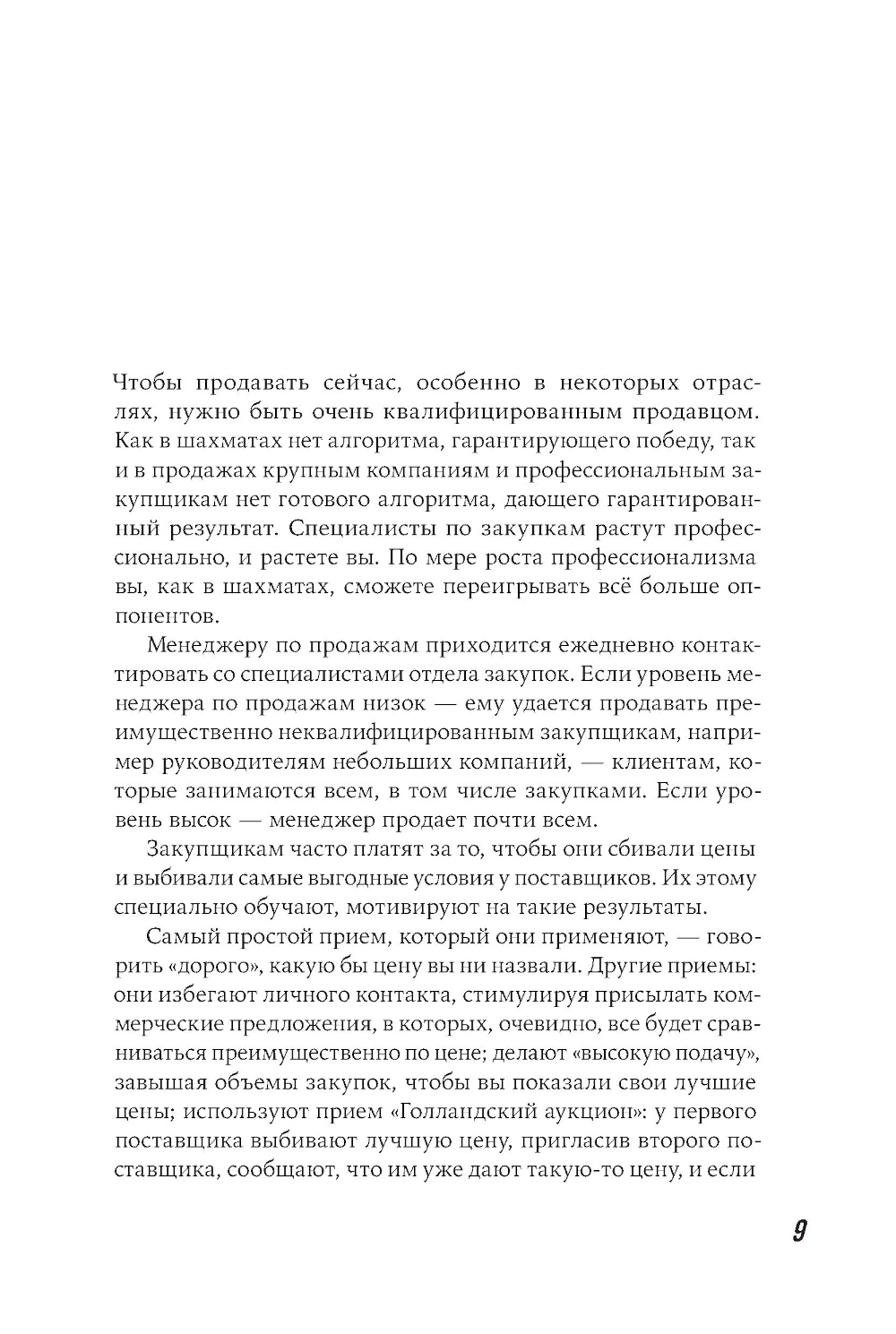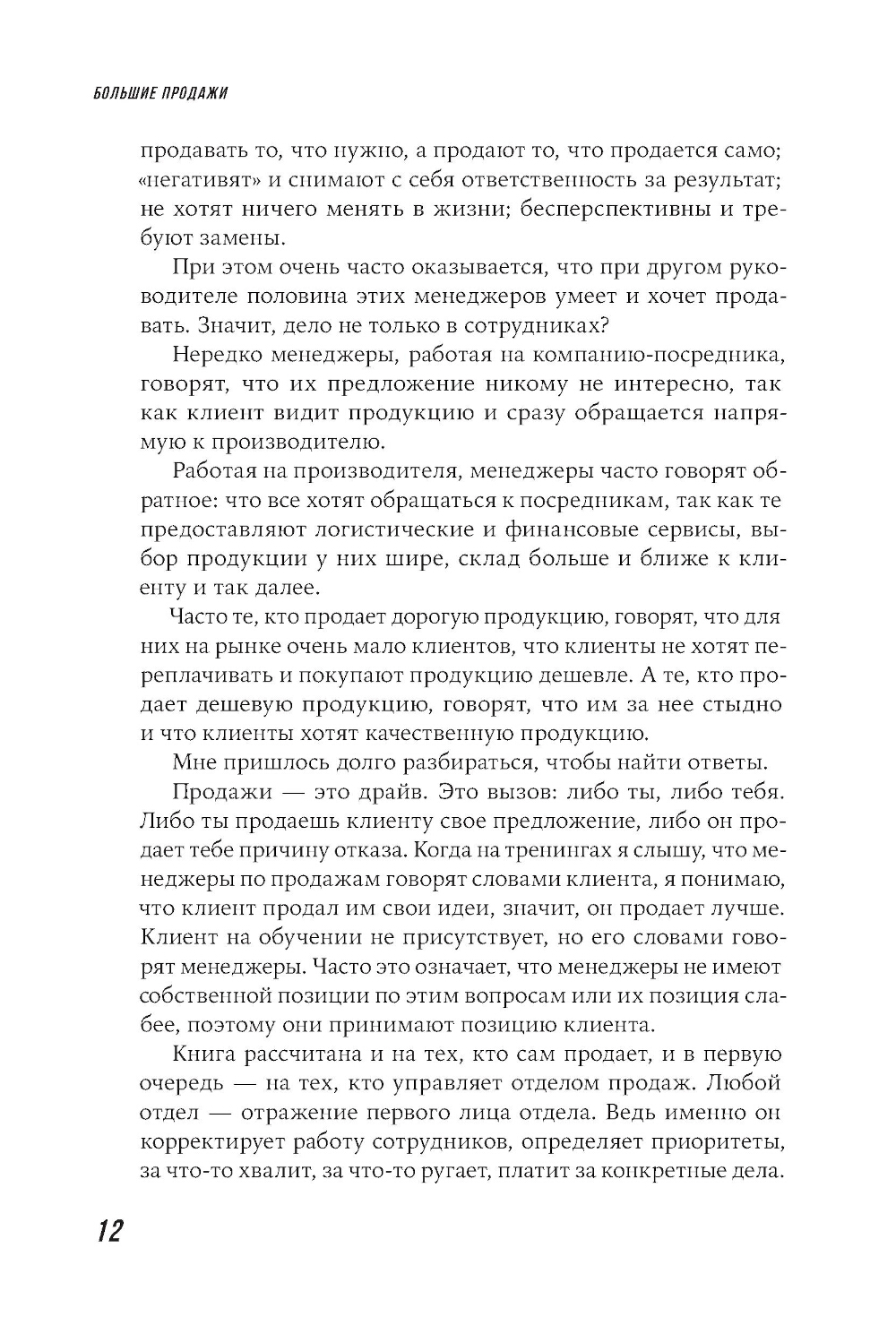 Умение продавать - один из важнейших факторов успеха любой компании, особенно в кризисные времена. Покупатели неохотно тратят деньги, а конкуренты наступают на пятки, потому руководитель должен всеми средствами мотивировать своих сотрудников и развивать их навыки продаж. Сергей Семёнов, бизнес-тренер и консультант с 17-летним опытом продаж, собрал наиболее эффективные методики ведения переговоров, убеждения клиентов и работы с возражениями, фундаментальные принципы и особенности продажи различных видов товаров и услуг, добавил проверенные инструменты повышения мотивации персонала и оценки результатов работы и получил систему управления продажами, которую с успехом можно использовать в компании любого профиля и размера. После внедрения описанной системы вы наконец сможете добиться нужных объемов продаж. Без компромиссов и оправданий со стороны подчиненных.| Издательство | Альпина Паблишер |
