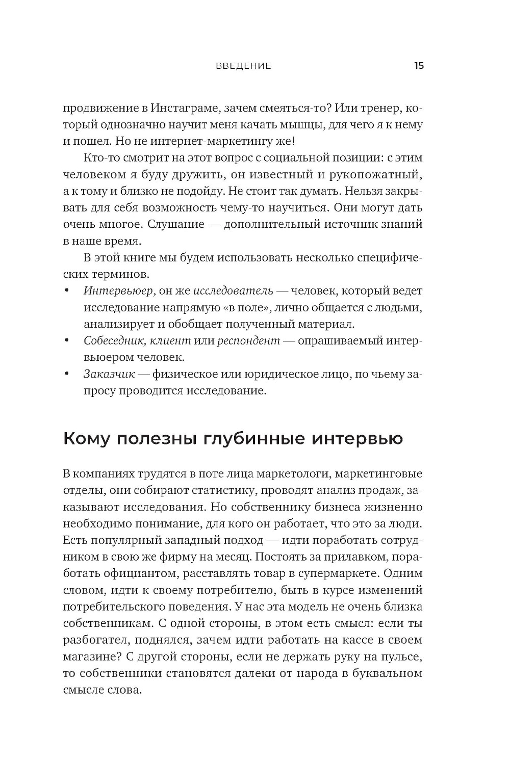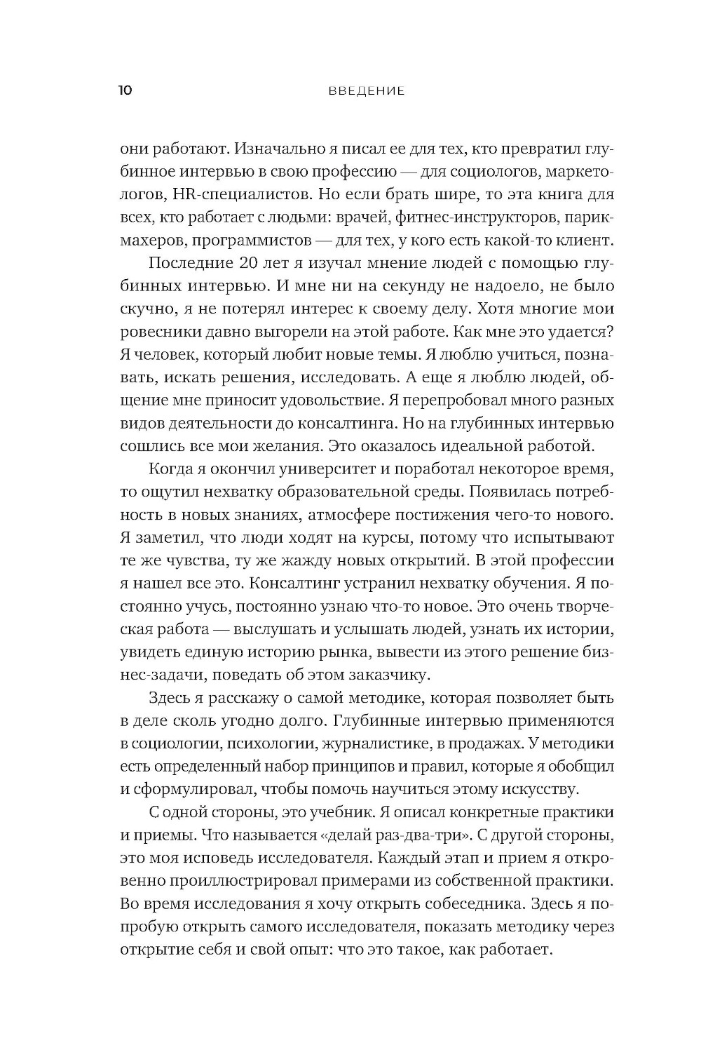 Олег Чулыгин знает о глубинном интервью все: за последние 20 лет с помощью этой методики он выполнил около 270 бизнес-заказов и поговорил с 10 000 человек. В своей книге он делится рецептом, как слушать, чтобы вам говорили то, что вам нужно. Вы узнаете, как расположить к себе собеседника, чтобы он был предельно откровенен и искренен с вами. Познакомитесь с принципами и примерами, как распознать фальшь. Эта книга о выстраивании глубинной коммуникации с клиентом. Вы научитесь максимально узнавать потребителей, увидите мир их глазами, услышите их.| Издательство | Альпина ПРО |