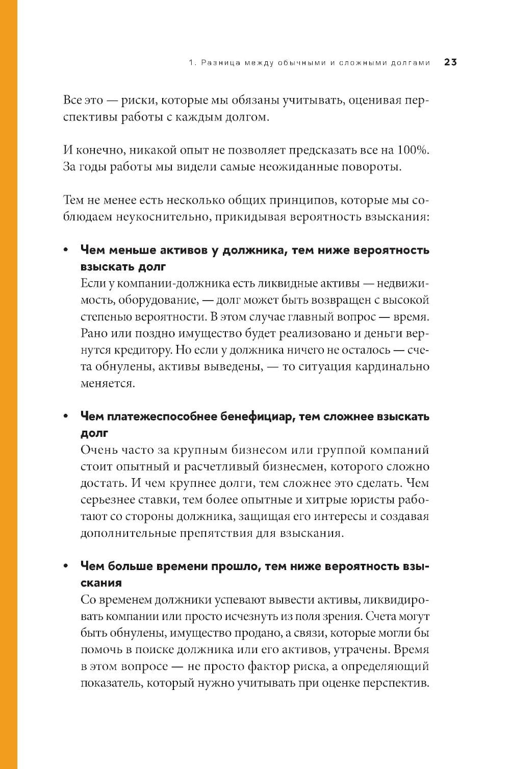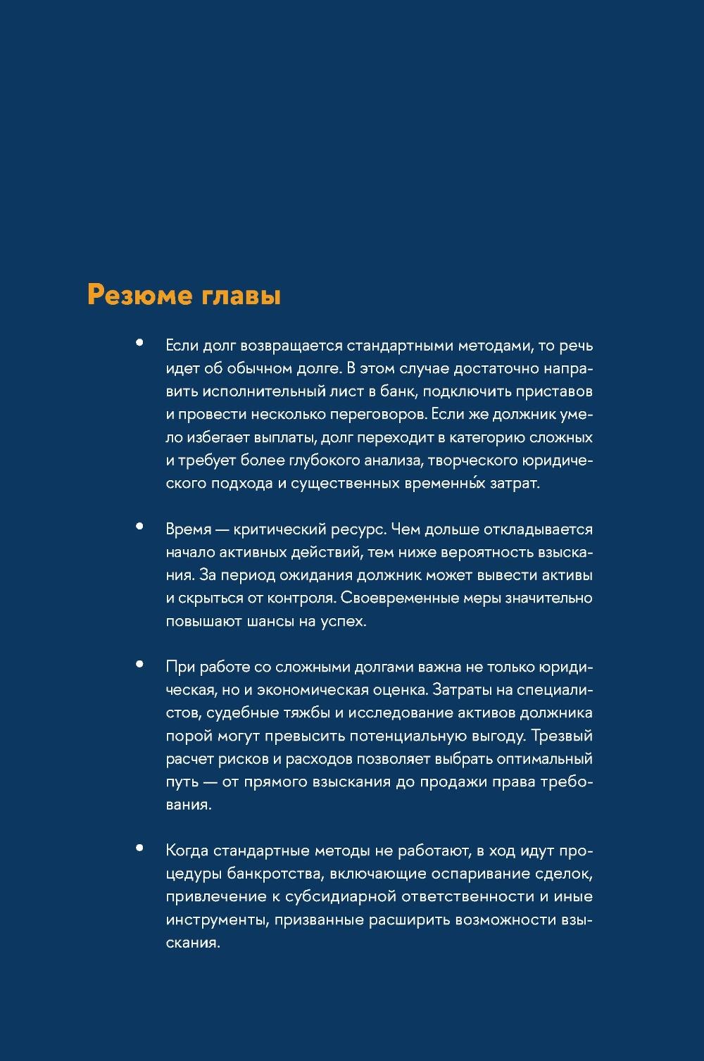 Большинство корпоративных долгов «зависают» не из-за суда, а из-за неверной тактики. Когда приставы бессильны, начинается настоящая работа: нужно трезво оценить перспективы и действовать через процедуры банкротства. Книга дает предпринимателю пошаговый план возврата «невозвратных» денег - без сложных терминов. Внутри - понятные критерии, начинать процедуру или нет; расчет затрат и сроков; где искать активы и контролирующих лиц; когда и как входить в реестр требований кредиторов; как работать с управляющим, оспаривать сделки, выходить на торги и привлекать к субсидиарной ответственности. Структура построена вокруг трех жизненных ситуаций: «имущество есть», «имущества нет», «все упущено (после ликвидации/исключения)». Каждая разобрана на примерах из практики - с типовыми рисками и конкретными шагами. Итог - вы понимаете, что делать сейчас, чтобы превратить проблемный долг в деньги, а не просто «вести дело».| Издательство | Альпина ПРО |