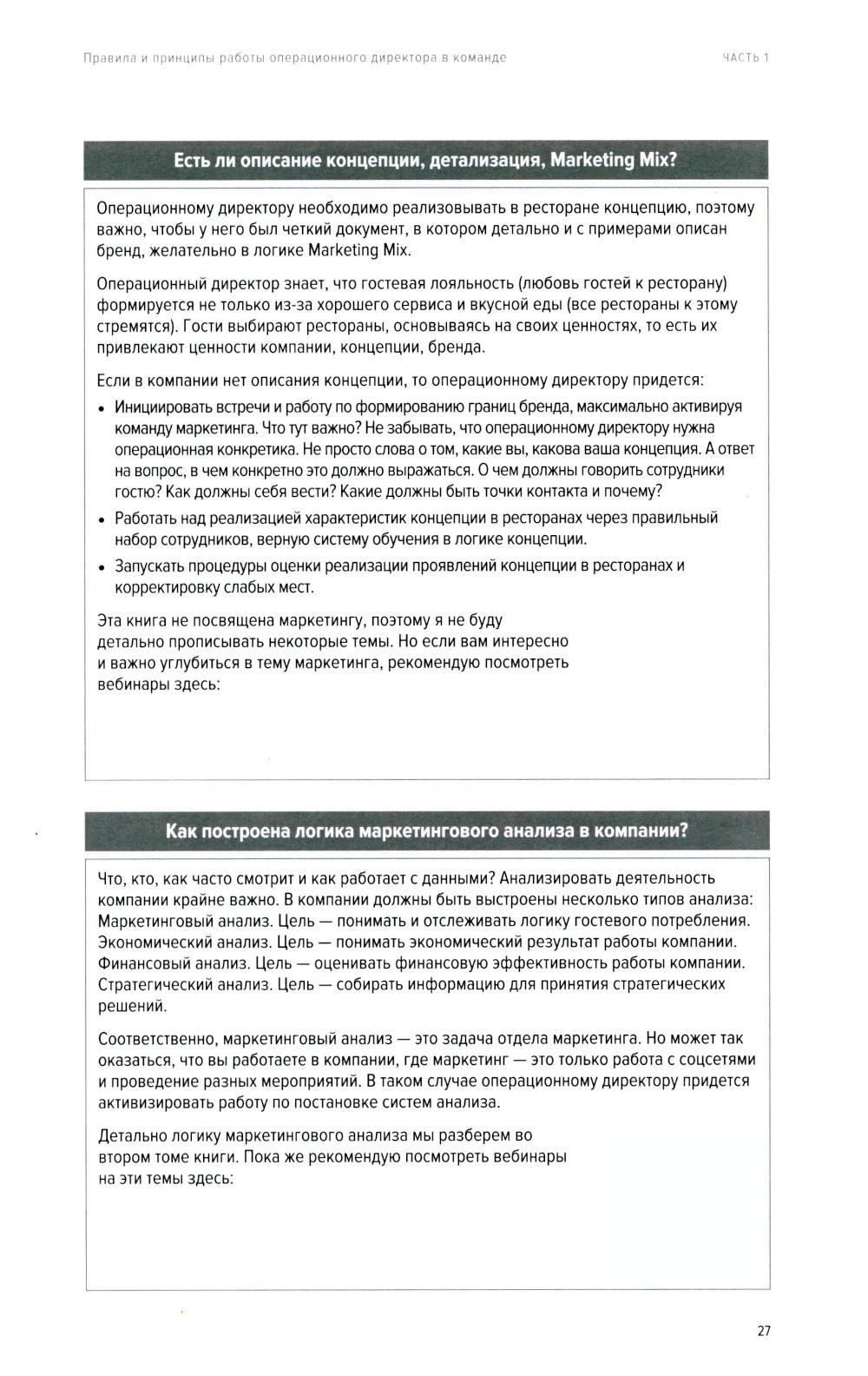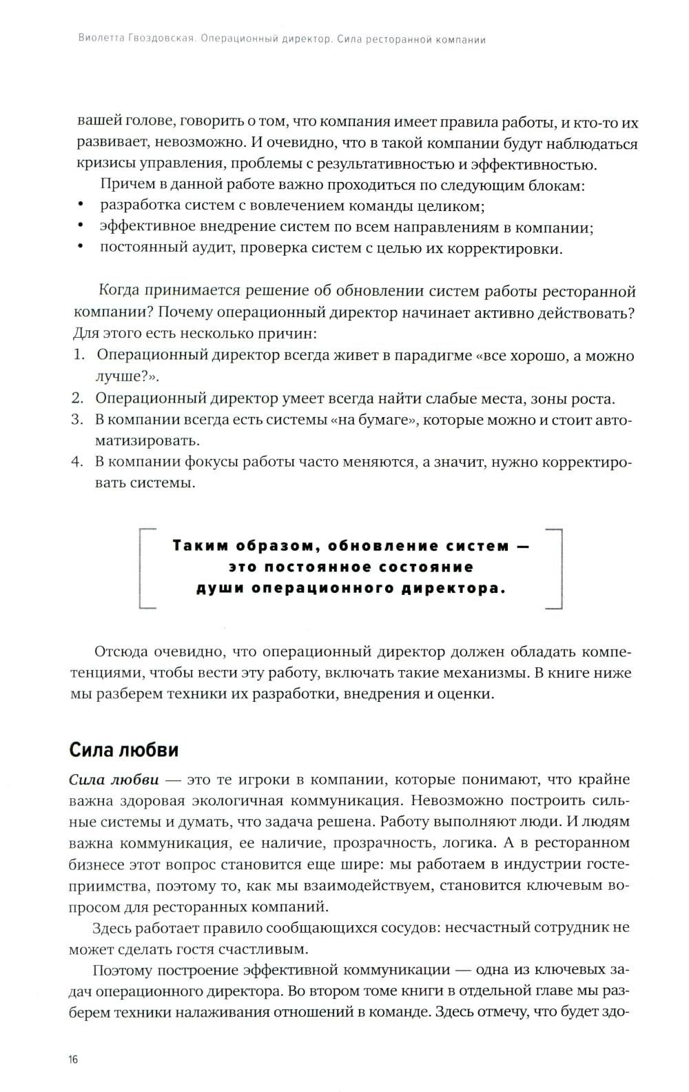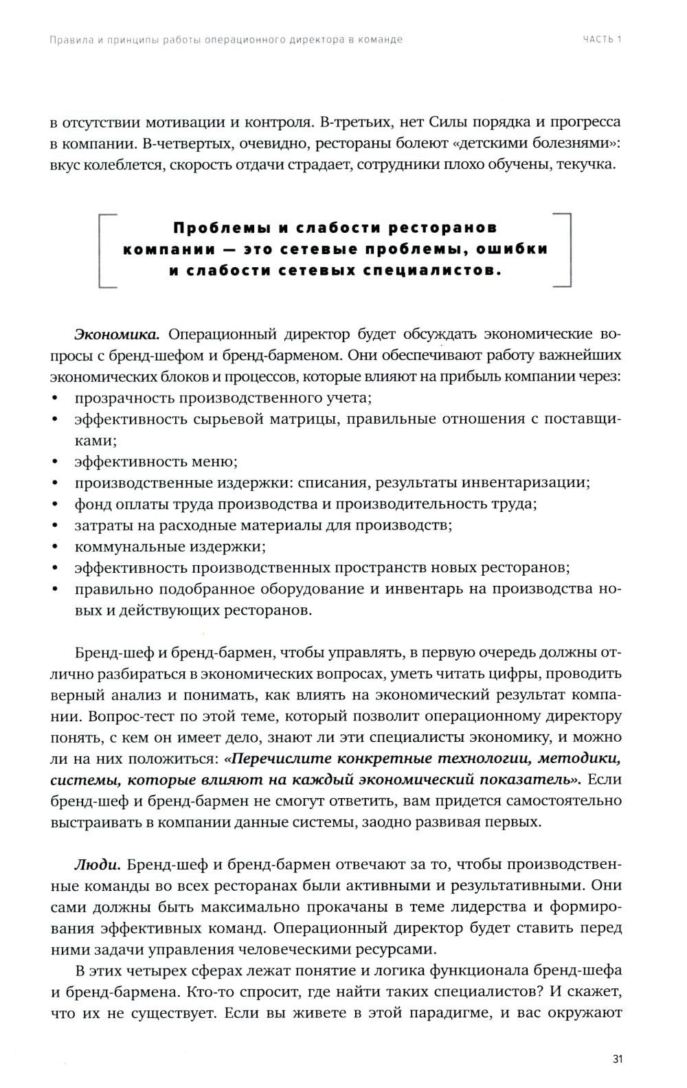 Это первый том книги по операционному управлению ресторанными сетями. Вы узнаете, как выстроить управляющую компанию, какие системы помогают управлять несколькими ресторанами, метрики успеха для каждой должности, логику функционала операционного директора и правила его взаимодействия с другими подразделениями управляющей компании. Мы разберем методологии управления ресторанами и вывода их на максимальную эффективность за счет вклада операционного директора. Как управлять сервисом через техники Service Design и Service Managment. Как управлять производствами нескольких ресторанов через техники Kitchen Management. В книге представлены экономические акценты: управление товарными остатками, выход на оптимальную цену закупки, управление фондом оплаты труда, влияние на выручку через операционные процессы в ресторанах, элементы экономической аналитики для операционного директора. Уникальность книги в том, что это единственный в своем роде мультимедийный проект - здесь вы увидите не только текст, но и ссылки на видеоматериал, дающий вам возможность глубже проработать каждую тему. Вы сможете не только читать, но и смотреть записи или скачивать полезный материал. Эта книга обречена на успех, поскольку в ней представлена информация о личных подходах, секретах и методиках в сетевом управлении, но также она содержит значительное количество кейсов и примеров из реальной ресторанной практики последних лет.| Издательство | Ресторанные ведомости |