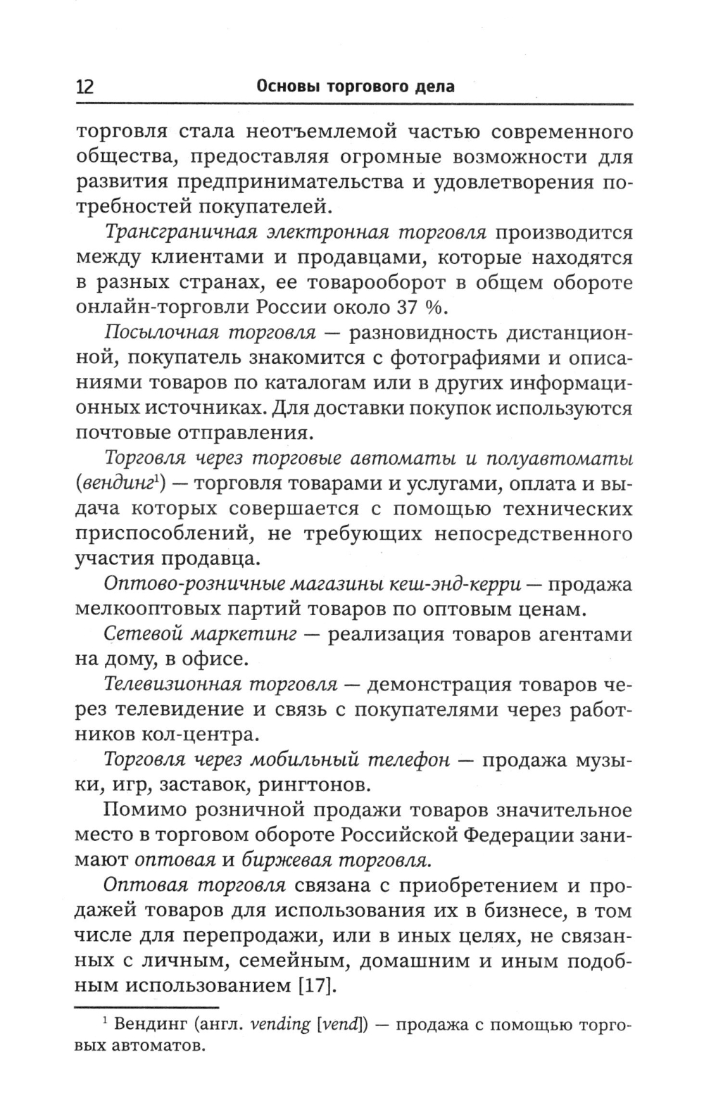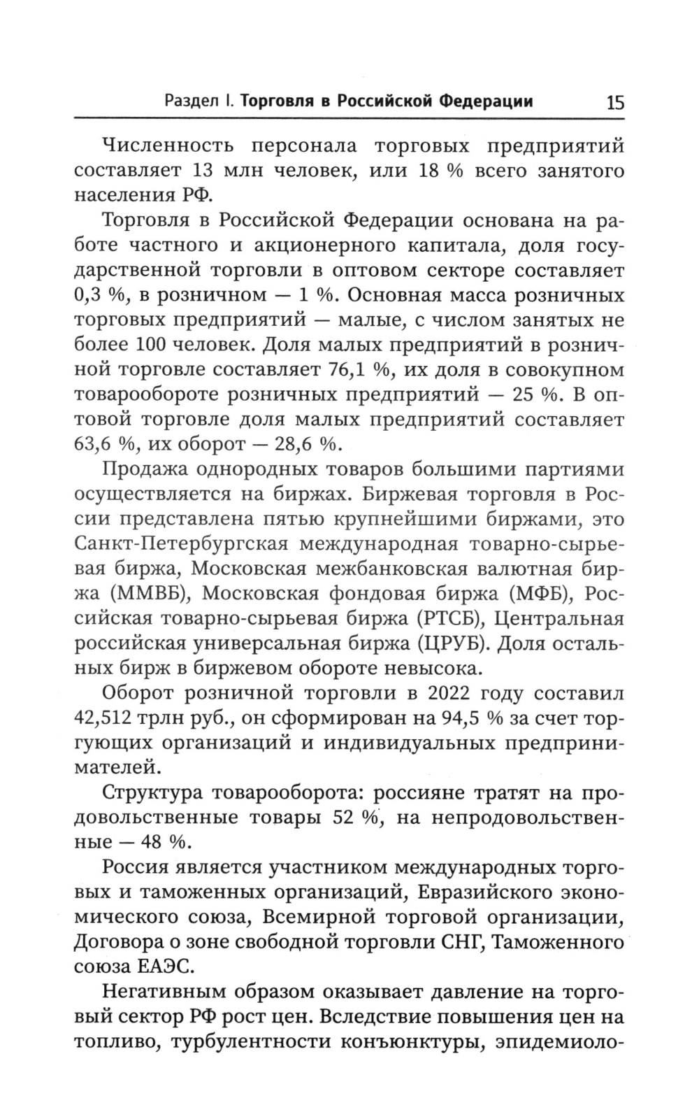 Учебное пособие подготовлено в соответствии с Федеральным государственным образовательным стандартом среднего профессионального образования по специальности 38.02.08 «Торговое дело». Пособие включает базисный материал по организации торгового дела. Отражено современное состояние торговли в Российской Федерации. Показаны цифровые решения для ретейла. Раскрыта специфика обслуживания покупателей и методы координации работы с клиентами. Представлены методы идентификации ассортиментной принадлежности потребительских товаров. Описан порядок экспертизы качества товаров и методы борьбы с их фальсификацией. Учебное издание предназначено для студентов среднего профессионального образования, а также слушателей курсов дополнительного образования.| Издательство | Феникс |