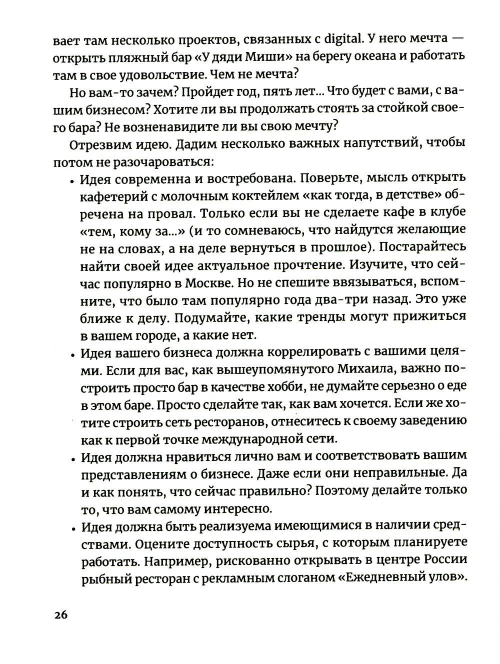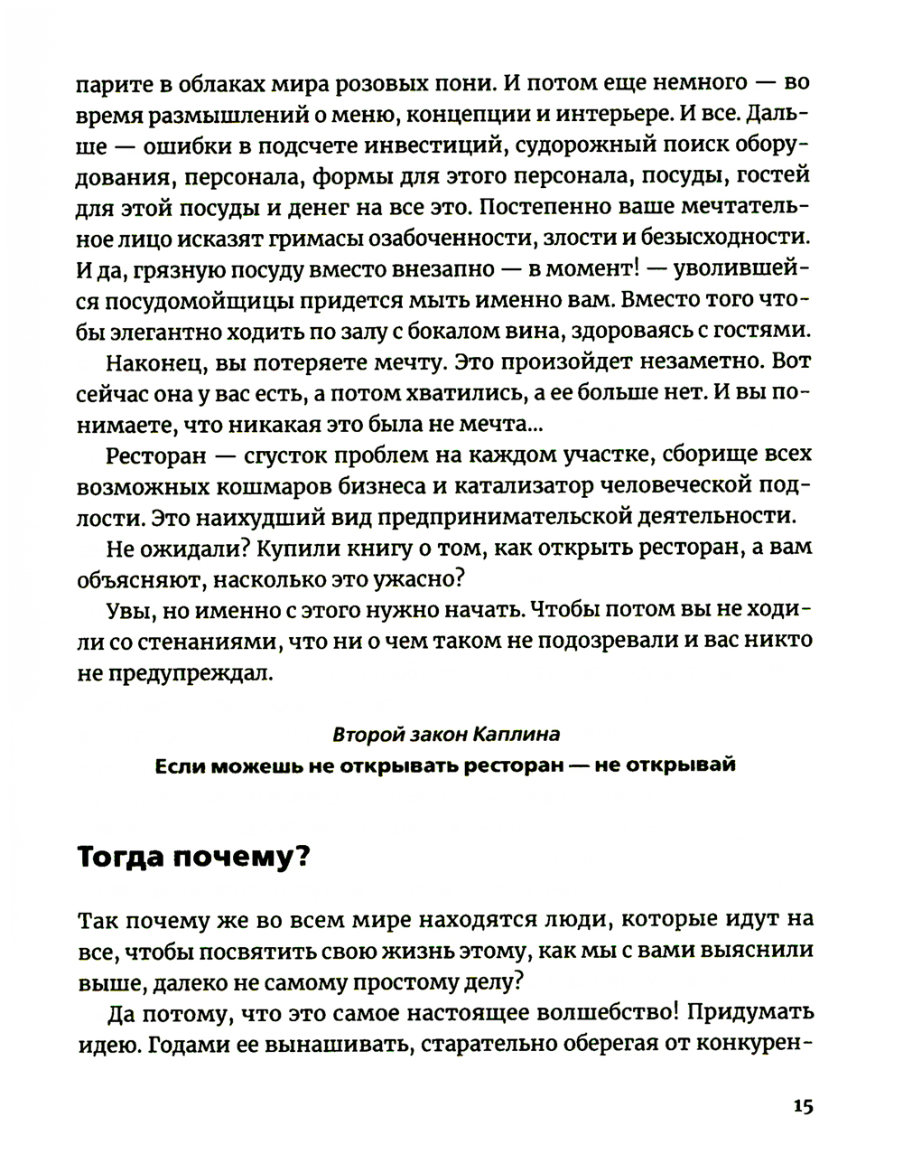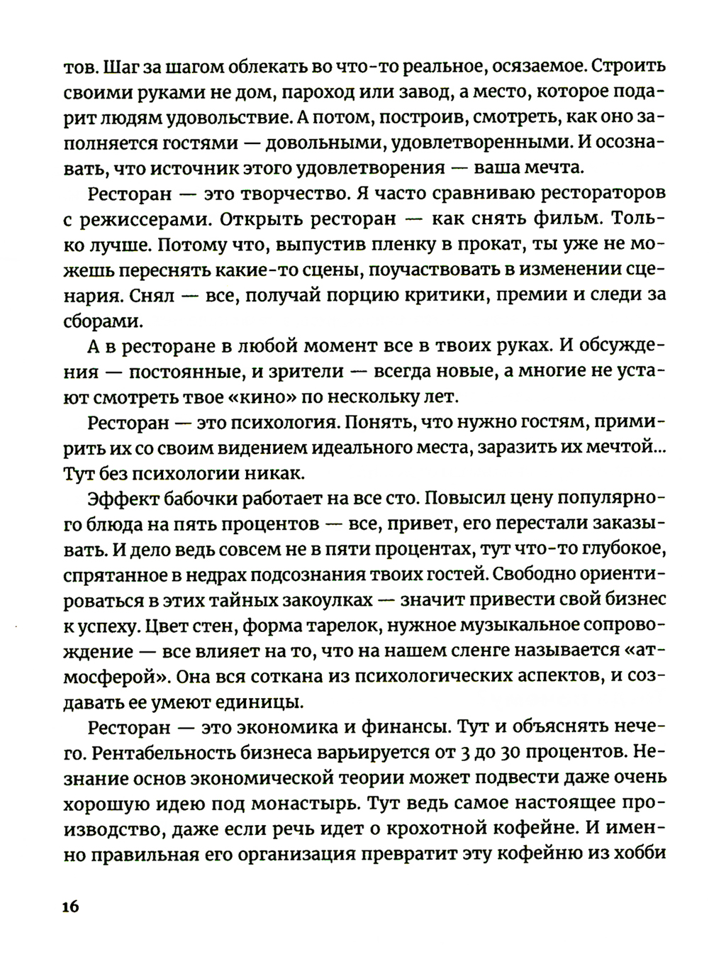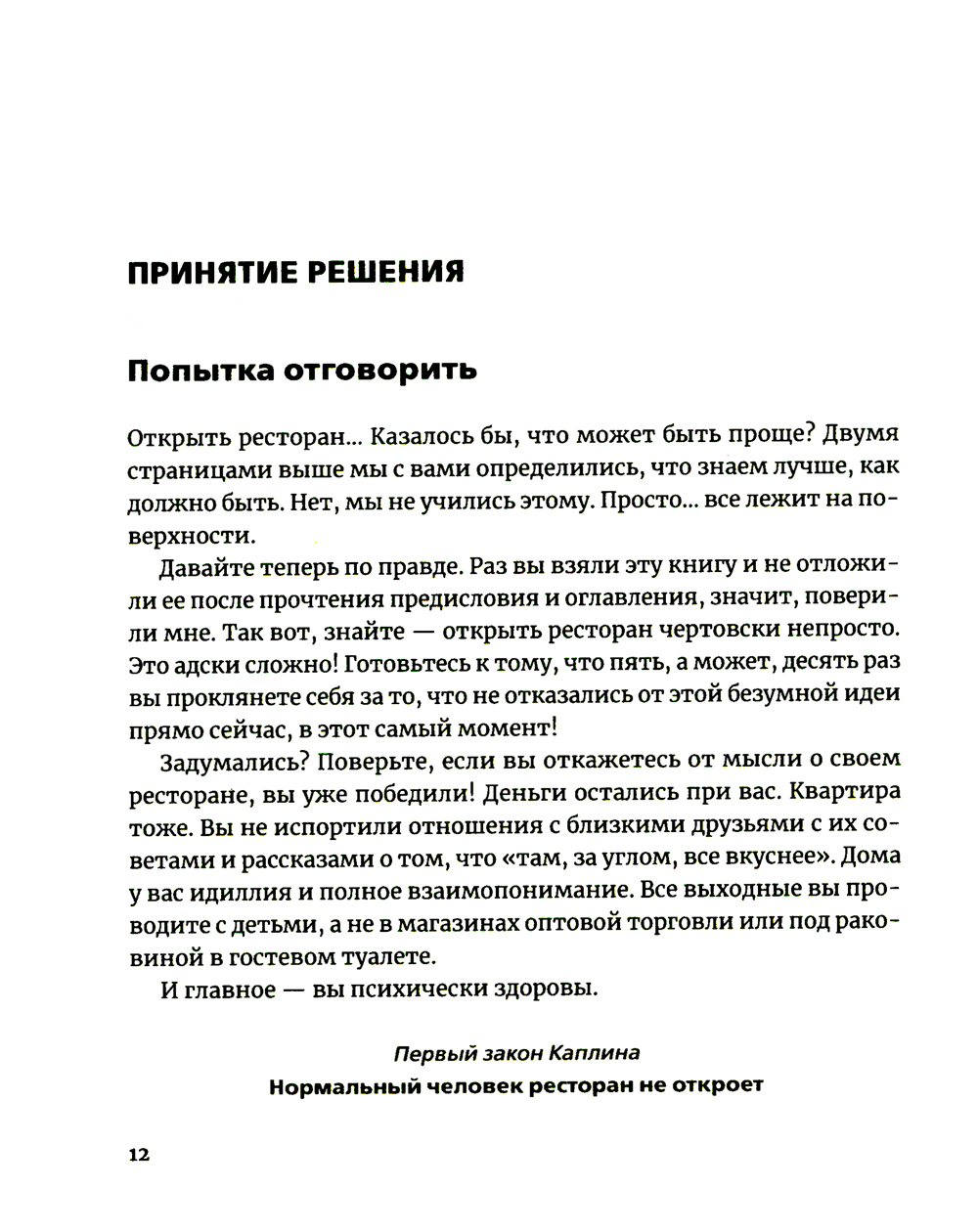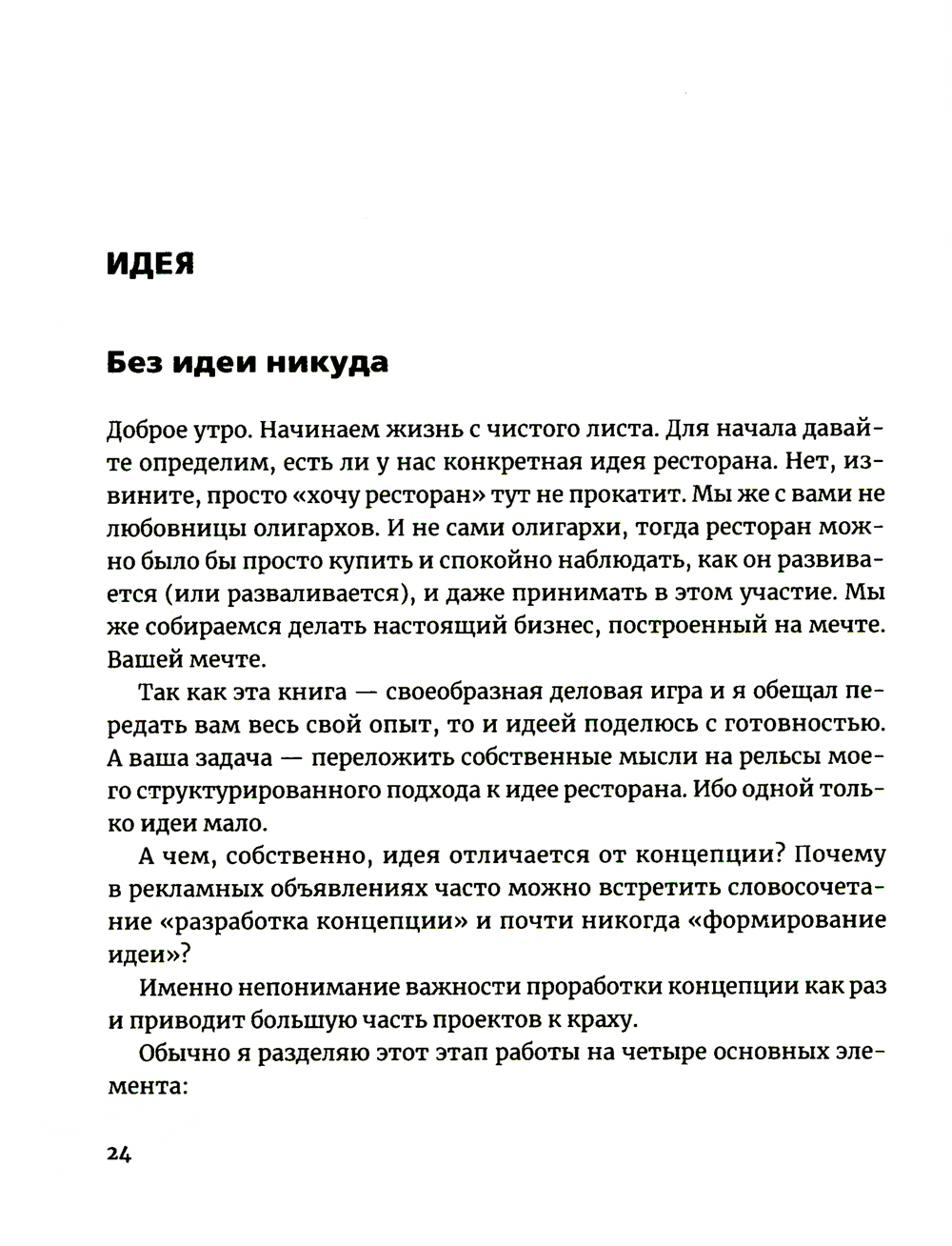 Планируете открыть свой первый ресторан? Сначала прочитайте эту книгу! Вместе с известным российским ресторатором, автором бестселлеров по созданию и управлению ресторанным бизнесом, вы пройдете весь путь к открытию собственного заведения - от рождения идеи до первых гостей. Путь этот извилист и непрост, но опытный гид проведет вас по нему максимально безопасно - расскажет, на что обратить внимание, даст практические советы, предупредит о ловушках, предостережет от ошибок. А если на каком-то этапе вам станет совсем тяжело (как известно, строительство ресторана легким не бывает), развлечет вас забавными историями и поучительными байками из своего профессионального опыта. Пожалуй, это самая полезная и веселая книга об открытии ресторана, которая когда-либо выходила в нашей стране.| Издательство | Изд.Река |