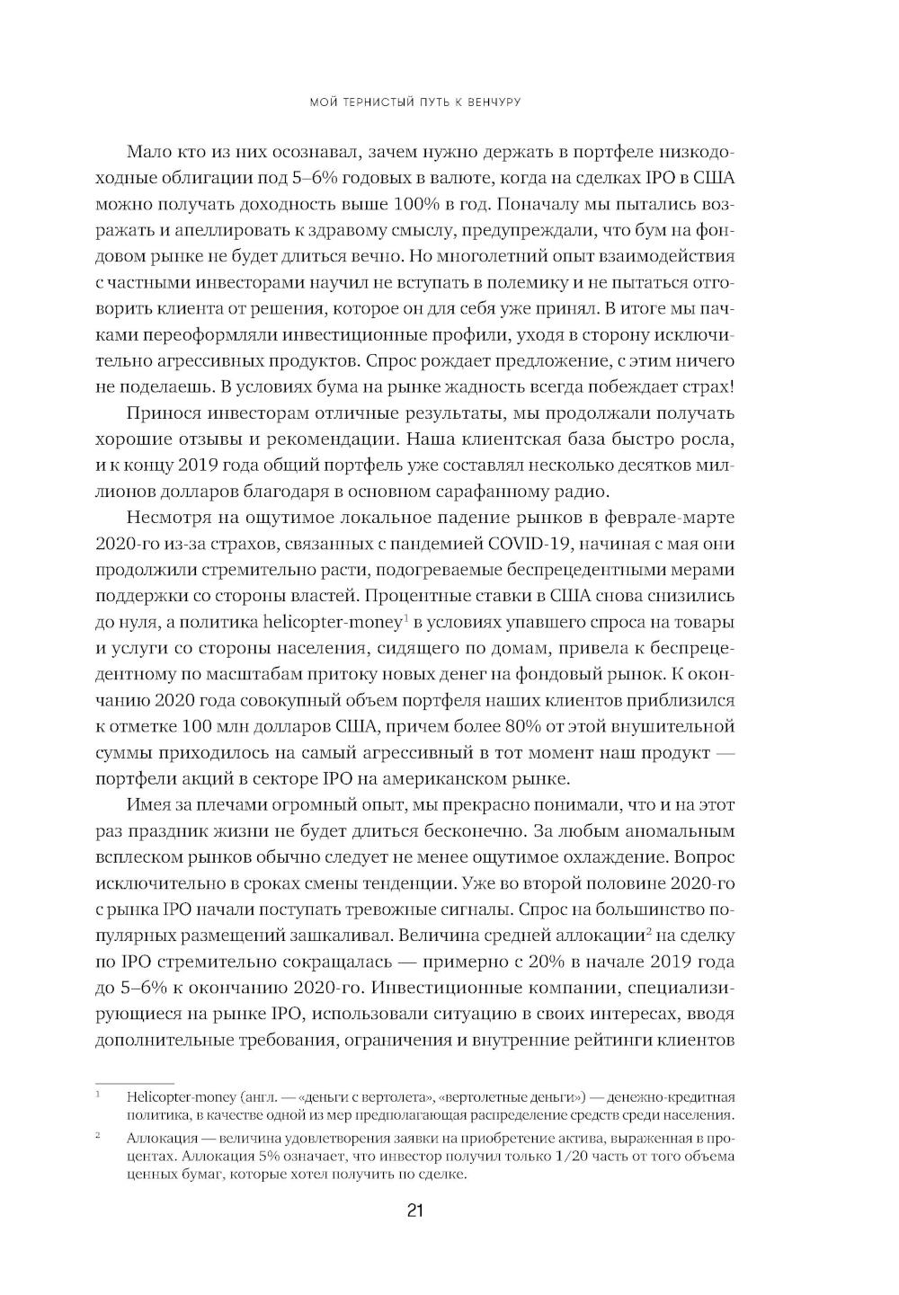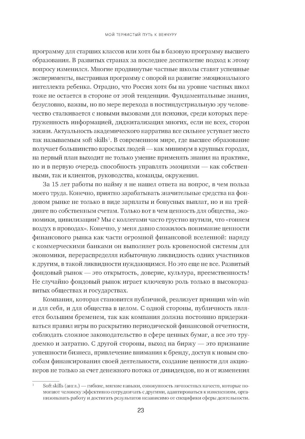 Темпы развития технологий в современном мире как-то незаметно обогнали размеренный ритм развития фондового рынка. Прорывные идеи, завернутые в прикладную форму и упакованные в эффективную бизнес-модель, приводят к стремительному увеличению числа компаний-единорогов, создающих огромные новые рынки и меняющих привычный уклад жизни всего человечества, задолго до выхода на биржу. Вокруг нас стремительно вырос новый чудный мир, где целые «стада единорогов», большинство из которых мы даже не знаем по имени, галопом несутся по прериям мирового рынка. Человеческая психика устроена таким образом, что все неизвестное нас одновременно пугает и притягивает, разжигая огонь нашего природного любопытства. Для большинства частных инвесторов венчур по-прежнему выглядит закрытым элитарным клубом, где «там наверху» киты сколачивают огромные состояния, а «здесь внизу» - удел историй про слитый капитал и заманчивые презентации. «Путеводитель по венчуру» протягивает руку каждому, кто собирается в очень интересное, но опасное путешествие по миру венчура.| Издательство | Альпина ПРО |