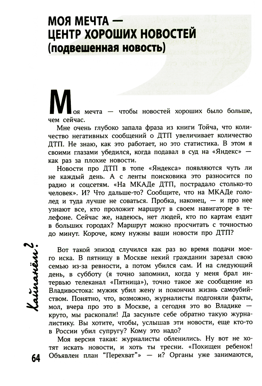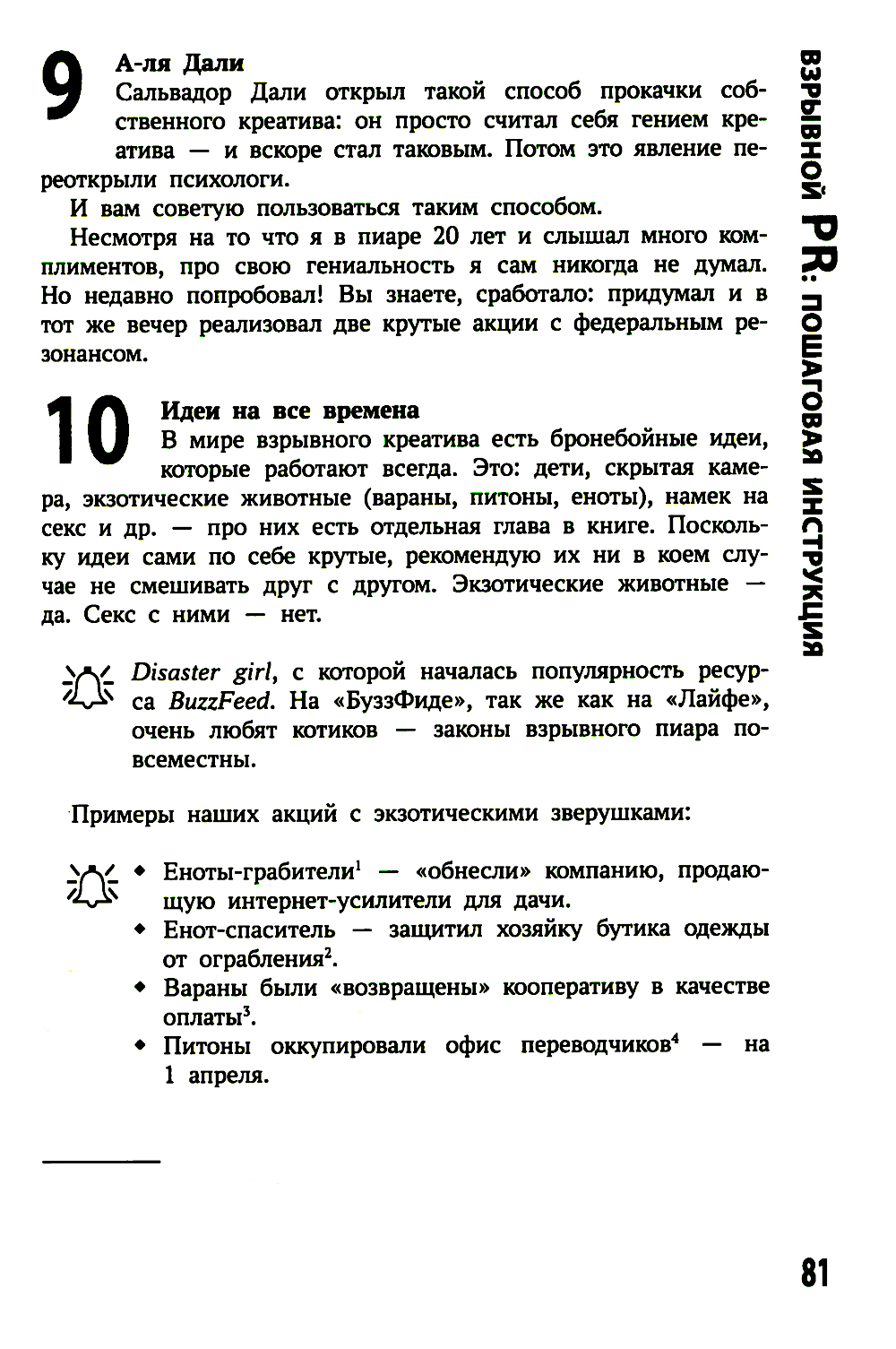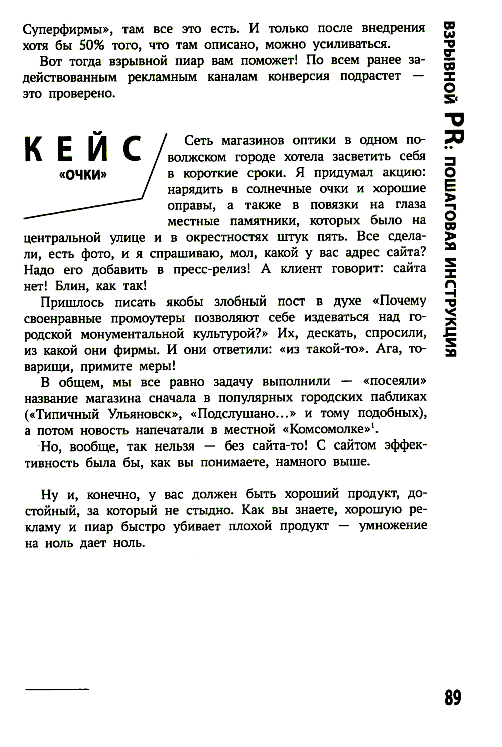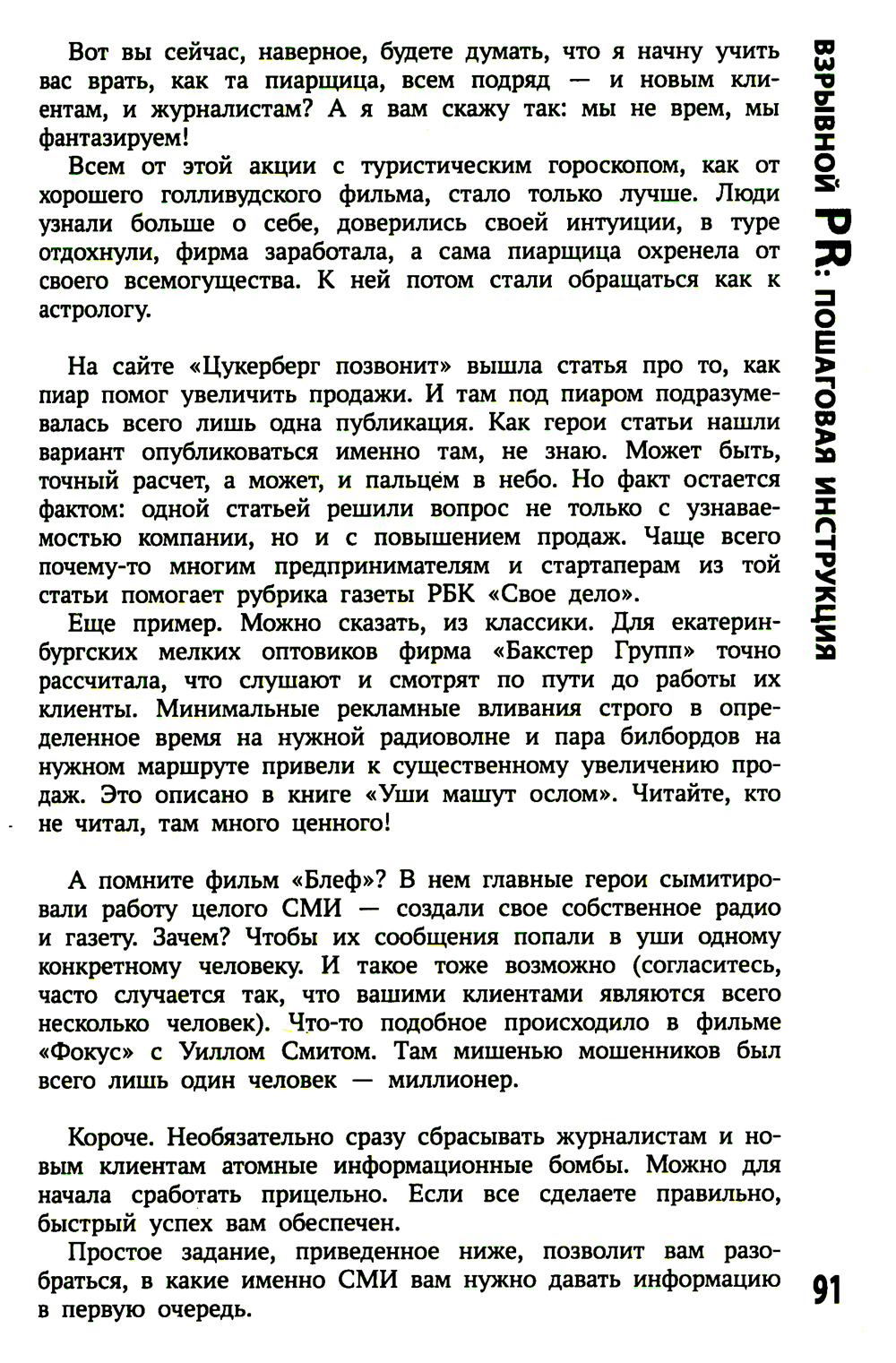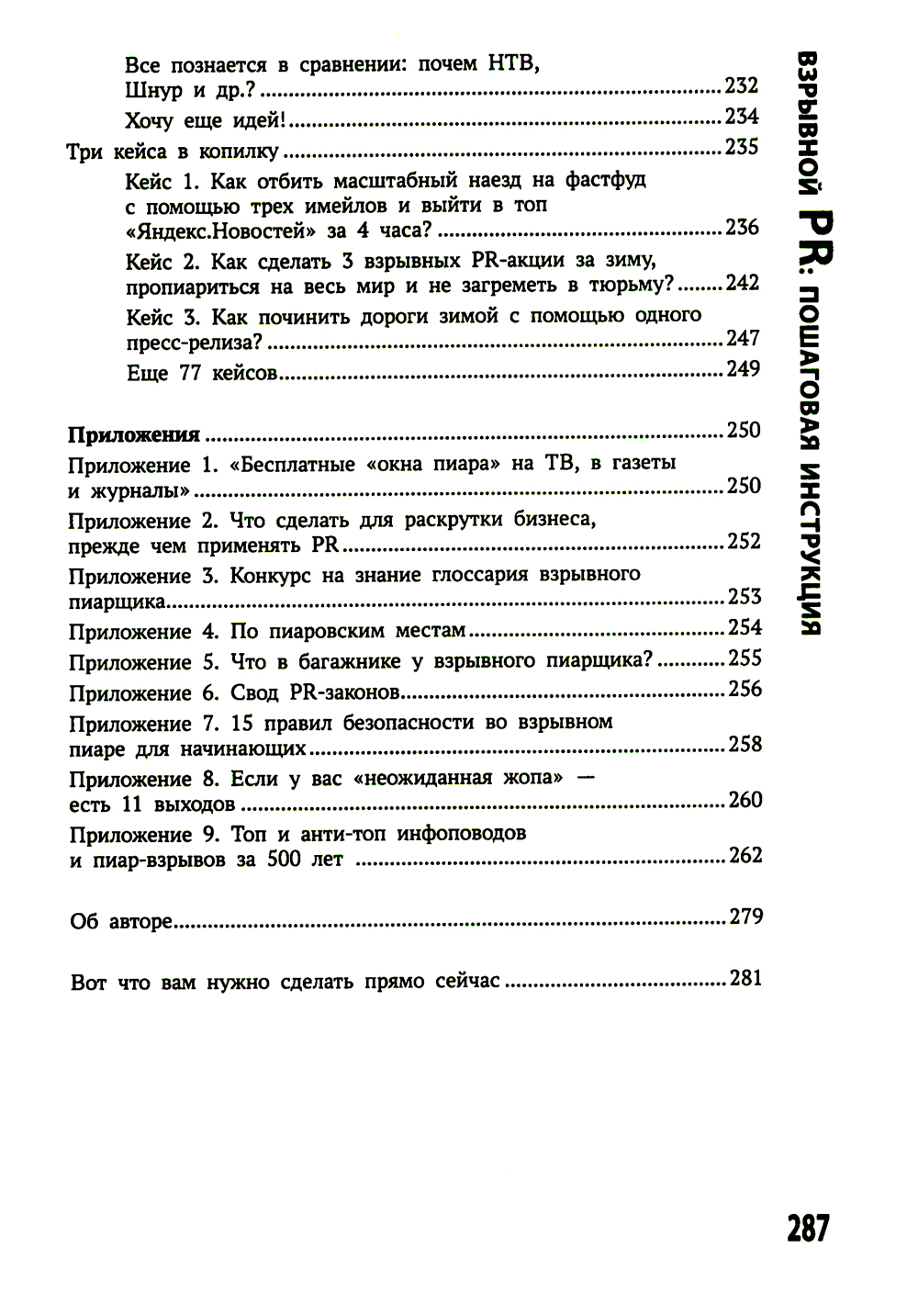 Это - книга-сенсация. Это книга-хайп. Это книга-скандал. Все хотят и прогреметь на всю страну или на весь мир, но так, чтобы «за это ничего не было». Впервые широкой публике представляется практическое руководство по управляемому (!) информационному взрыву и вирусному маркетингу. Каждый день человек видит 2 млн брендов, месседжей, смыслов. Из них осознается не более 2000. Но деньги человек отдаёт не всем! И принимает ключевые послания не больше чем от 10-100 брендов. Шум? Шум! Шум!!! Как выделиться среди перенасыщенного медиаполя? Не скажу, что легко. В общем-то, все просто, но решиться на это нелегко. Сначала стрессануть и пожертвовать репутацией в моменте, но выиграть стратегически. Главное не бояться выйти за рамки. - Как придумать Идею, которая раскрутит себя сама? - Как протащить бренд в СМИ без рекламных вложений? - Как победить конкурентов в головах клиентов, когда у вас только мозги, а у них большие бюджеты? - Как на «красном рынке» получить дополнительное преимущество - информационное лидерство? Вы знаете историю банка, про который все думают, что он в топ-5, а он в топ-100 на самом деле. Сила маркетинга и пиара! После этой книги вы будете не только смотреть на новости иначе, но и научитесь делать их. Миссия автора - сделать так, чтобы позитивных новостей в мире и в России было больше! Вы с нами? Скорее читайте книгу и применяйте ее тайные магические знания.| Издательство | Феникс |