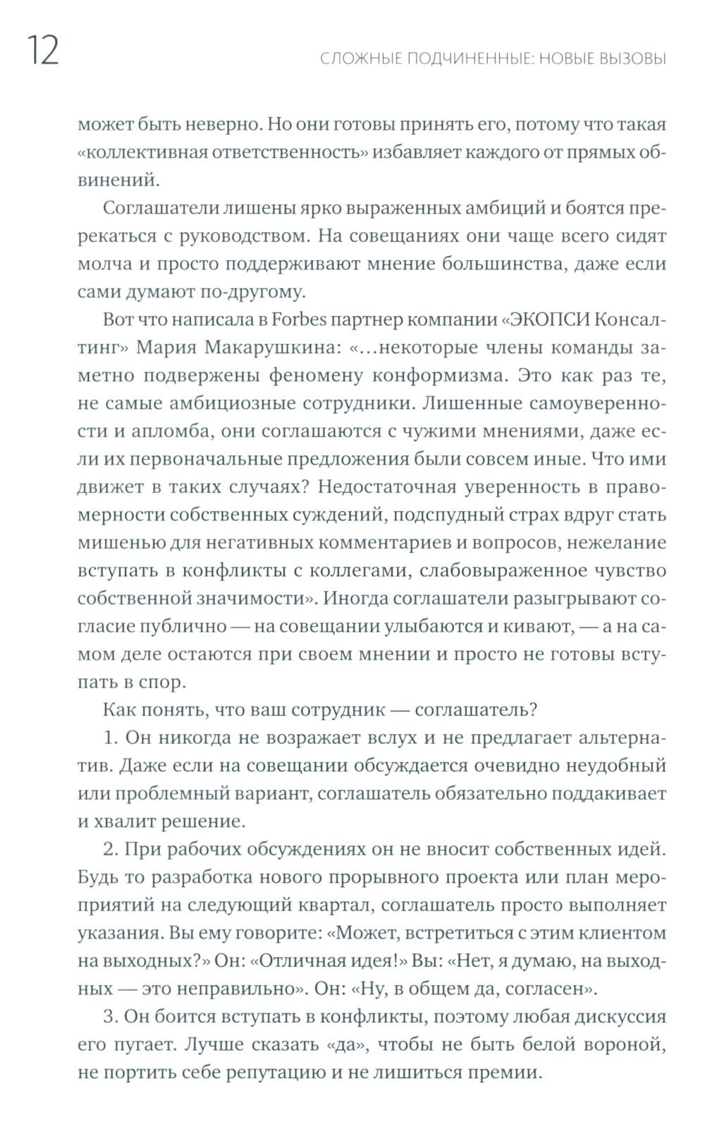 Это вторая книга Максима Батырева, посвященная сложным сотрудникам. В ней он собрал новые, актуальные для сегодняшних компаний типы: от зумеров до тех, кто старше вас, от неуверенных в себе до серых кардиналов. Все описания сопровождаются управленческими решениями и стратегиями действий для каждого конкретного случая. Благодаря им вы сможете скорректировать поведение почти любого подчиненного и получить эффективного командного работника.| Издательство | Манн, Иванов и Фербер |