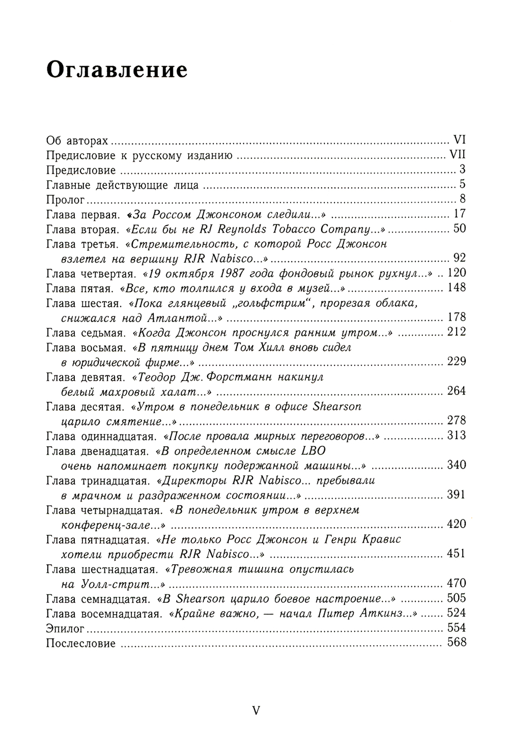 Это захватывающая история о развернувшейся на Уолл-стрит в октябре-ноябре 1988 года борьбе за контроль над компанией RJR Nabisco. В основу книги легли более 100 интервью, которые Брайан Бурроу и Джон Хельяр провели с участниками описываемых событий - с президентом RJR Nabisco Россом Джонсоном, Генри Крависом, Джорджем Робертсом, Тедом Форстманном, Джимом Махером и другими видными дельцами финансового мира. Авторы знакомят читателя с историей становления, процветания и падения одной из крупнейших американских компаний, мастерски рисуют характеры участвующих в схватке управляющих, юристов, финансистов, дают возможность окунуться в атмосферу Уолл-стрит и ощутить накал страстей, разгоревшихся вокруг кредитованного выкупа контрольного пакета акций RJR Nabisco. Книга читается на одном дыхании и, несомненно, будет интересна как бизнесменам, финансистам, руководителям компаний, так и всем любознательным людям.| Издательство | Олимп-Бизнес |