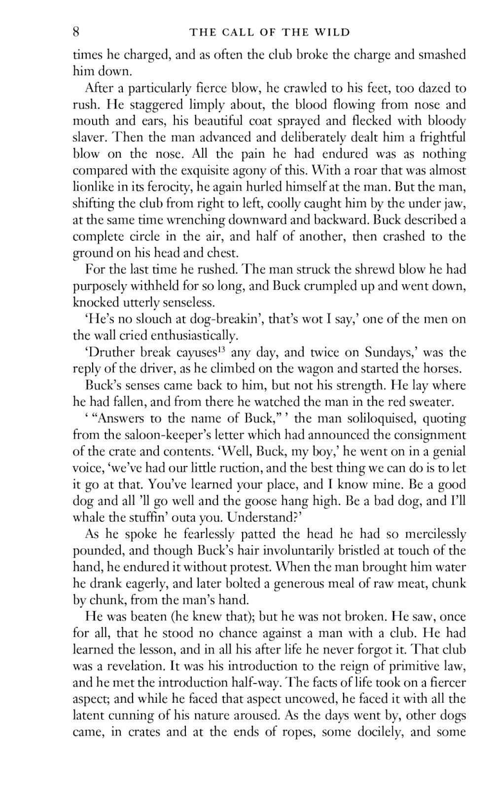 The Call of the Wild and White Fang are world famous animal stories. Set in Alaska during the Klondike Gold Rush of the late 1890s, The Call of the Wild is about Buck, the magnificent cross-bred offspring of a St Bernard and a Scottish Collie. Stolen from his pampered life on a Californian estate and shipped to the Klondike to work as a sledge dog, he triumphs over his circumstances and becomes the leader of a wolf pack. The story records the decivilisation of Buck as he answers the call of the wild , an inherent memory of primeval origins to which he instinctively responds. In contrast, White Fang relates the tale of a wolf born and bred in the wild which is civilized by the master he comes to trust and love. The brutal world of the Klondike miners and their dogs is brilliantly evoked and Jack London s rendering of the sentient life of Buck and White Fang as they confront their destiny is enthralling and convincing. The deeper resonance of these stories derives from the author s use of the myth of the hero who survives by strength and courage, a powerful myth that still appeals to our collective unconscious.| Издательство | Wordsworth |