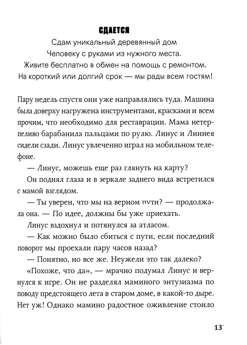 Старый дом в имении Тракеборг пустовал много лет с тех пор, как бесследно исчез его загадочный владелец. На лето сюда переезжают двенадцатилетние близнецы Линус и Линнея со своей мамой-реставратором, которой предстоит этот дом отремонтировать. В первую же ночь мальчик слышит странные звуки за стеной, а вскоре находит под выломанными половицами ключ. Кто мог его туда спрятать, а главное - что за дверь он открывает? «Ключ от Хинсидеса» - первая книга подростковой трилогии, созданной известной шведской писательницей Карин Альвтеген и ее сыном Альбином. Вместе они написали фантастическую историю, полную тайн и приключений, от которой невозможно оторваться. Карин Альвтеген (р. 1965) известна как автор детективов и психологической прозы. Ее книги отмечены шведскими и международными литературными наградами, переведены на многие языки. На русском языке выходили детективы автора, а также роман «Эффект бабочки» (ИД «Городец», 2020). Для Альбина Альвтегена (р. 1993) книга «Ключ от Хинсидеса» стала литературным дебютом.| Издательство | Городец |