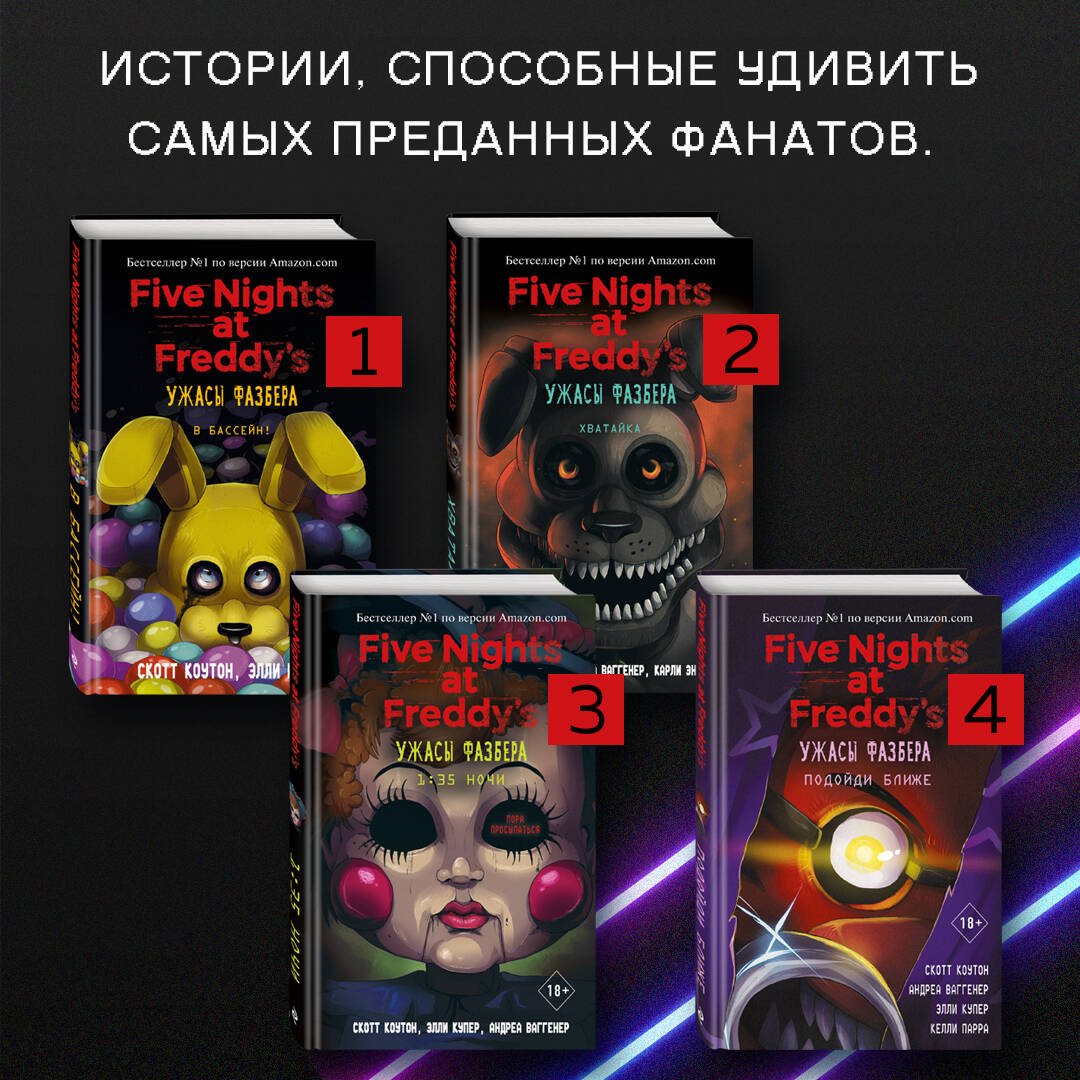 ДЛЯ САМЫХ ПРЕДАННЫХ ФАНАТОВ! Легендарные «ФНАФ» возвращаются! «В бассейн!» (Into the Pit) - та самая первая книга новой линейки книг об аниматрониках! Потрясающая новинка, которая возвращает нас в уникальную Вселенную... В книгу вошли три повести: «В бассейн!» (Into the Pit), «Быть красивой» (To be Beautiful), «На сто ладов» (Count the Ways). Чего вы хотите больше всего на свете? Это вопрос, на который Освальд, Сара и Милли знают ответ. Освальд хотел бы, чтобы лето не было таким скучным, Сара хотела бы быть красивой, а Милли хотела бы стать незаметной. Но во Вселенной FNAF, Five Nights at Freddy's самые сокровенные желания имеют неожиданную цену. Будьте осторожны: эти истории способны выбить из колеи даже самых отчаянных поклонников «Пять ночей с Фредди»! Можно читать в произвольном порядке, каждая новая история имеет законченный сюжет.| Издательство | ООО "Издательство "Эксмо" |