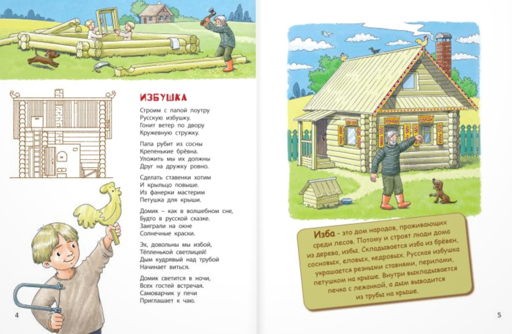 В степях, лесах, горах - всюду живут люди! Вот только дома в разных уголках мира выглядят по-разному. Где-то жилища возводят из снега, где-то строят из дерева, где-то из камня… Какие-то домики умеют плавать по морю, а другие тают летом. И называются они по-разному: изба, чум, вигвам… Обо всех этих и многих других строениях малышам расскажет Наталья Иванова, а покажет, как они выглядят, - художник Владимир Юденков. Познавательная книжка в стихах с краткими полезными сведениями о строительстве разнообразных домов и забавными рисунками расширит кругозор ребенка. Для чтения взрослыми детям.| Издательство | ЭНАС-КНИГА |