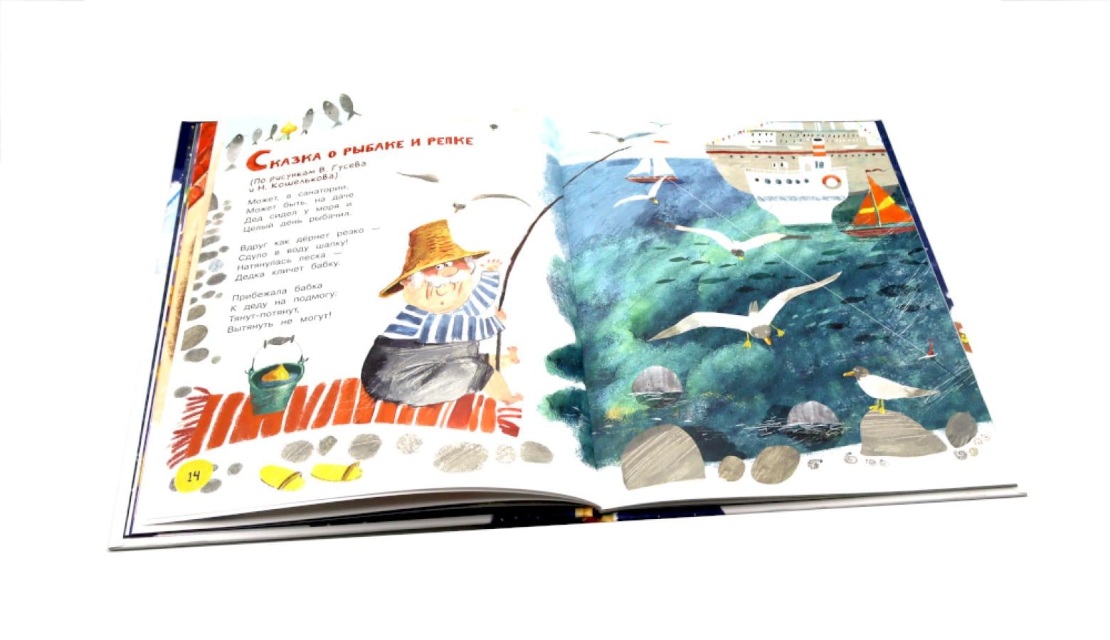Андрей Усачев по-новому смотрит на русский фольклор, переворачивает его с ног на голову и выворачивает наизнанку. И вот уже дедка с семейством тянут-потянут и вытягивают из пучины морской золотую рыбку, у Лукоморья разгуливает Зеленый Кот, а Принцесса на горошине спит! И слегка сопит. Веселые стихи сопровождаются иллюстрациями Ирины Гавриловой.| Издательство | Лабиринт Пресс |