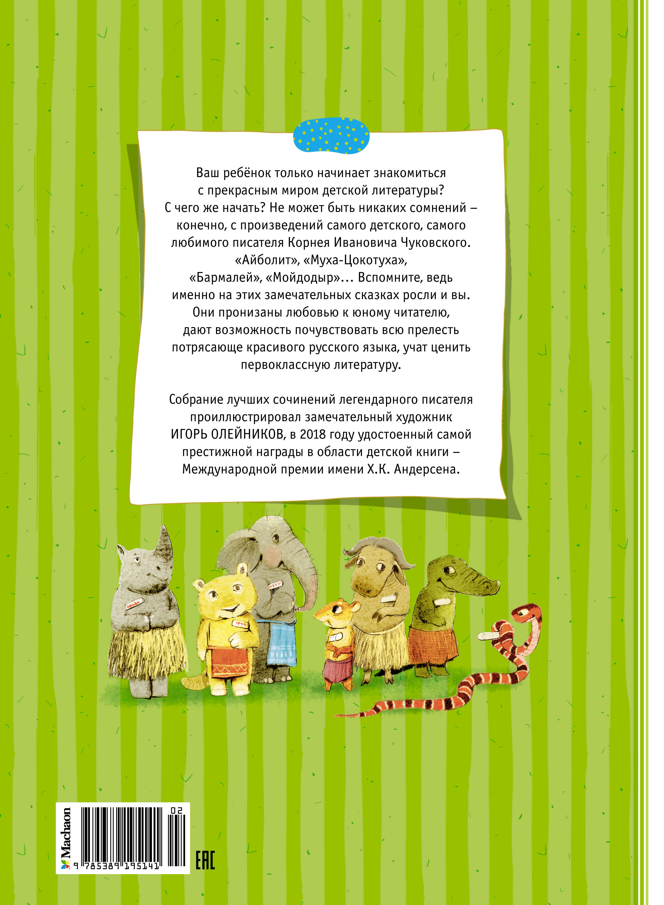 Ваш ребёнок только начинает знакомиться с прекрасным миром детской литературы? С чего же начать? Не может быть никаких сомнений - конечно, с произведений самого детского, самого любимого писателя Корнея Ивановича Чуковского. "Айболит", "Муха-Цокотуха", "Бармалей", "Мойдодыр"… Вспомните, ведь именно на этих замечательных сказках росли и вы. Они пронизаны любовью к юному читателю, дают возможность почувствовать всю прелесть потрясающе красивого русского языка, учат ценить первоклассную литературу. Собрание лучших сочинений легендарного писателя проиллюстрировал замечательный художник Игорь Олейников, в 2018 году удостоенный самой престижной награды в области детской книги - Международной премии имени Х.К. Андерсена.| Издательство | Азбука-Аттикус Издат.группа ООО |