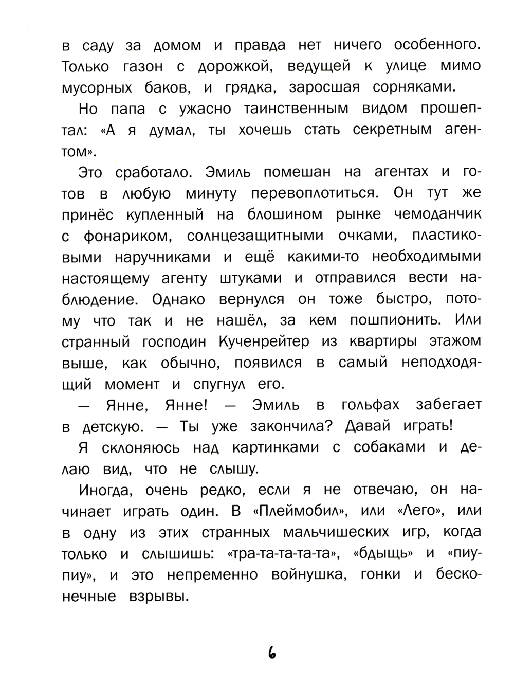 Кому нужны эти вечно надоедливые и приставучие младшие братья? Уж точно не Янне! Лучше бы у неё была собака! Настоящая! Ну вот хоть бы такая, как у её подруги Филин. Но родители ни за что не разрешат девочке взять таксу. Даже на недельку! Пока Филин в отъезде. И всё потому, что брат Эмиль до ужаса боится собак. Выход один - завести собаку тайно от всех!