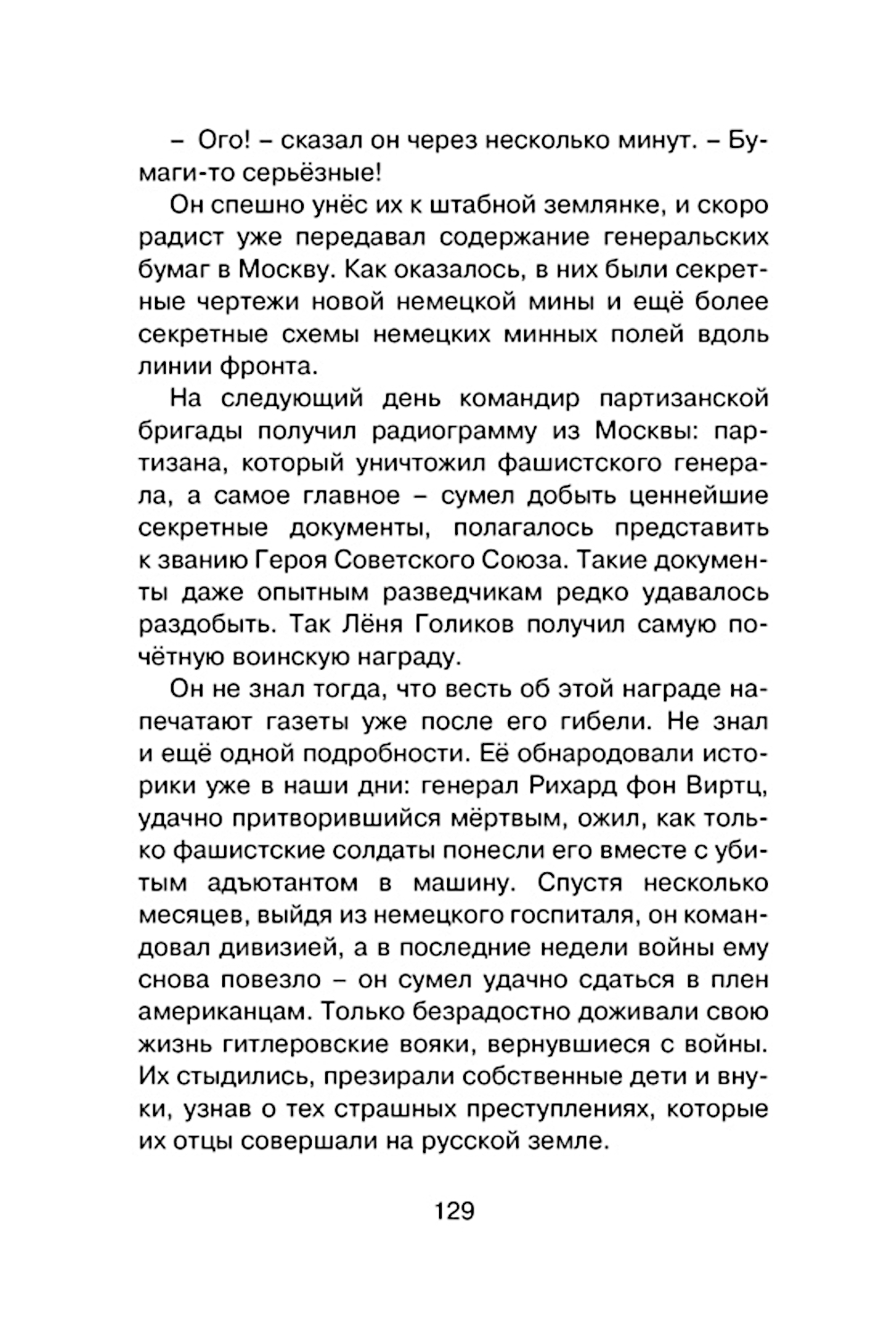 Во время Великой Отечественной войны дети, ровесники современных подростков, наравне со взрослыми защищали свою Родину от фашистских захватчиков, проявляя невероятную силу духа, выдержку, мужество и отвагу. На долю этих рано повзрослевших девчонок и мальчишек выпало немало испытаний, которые не сломили их, напротив, ребята стойко переносили все тяготы войны, доказав всем нам, что подвиг - это не просто смелость и героизм, это ещё и великий труд, железная воля и огромная любовь к Родине. В книгу вошли рассказы о юных героях Великой Отечественной войны - Лёне Голикове, Зине Портновой, Марате Казее и многих других.| Издательство | Махаон |