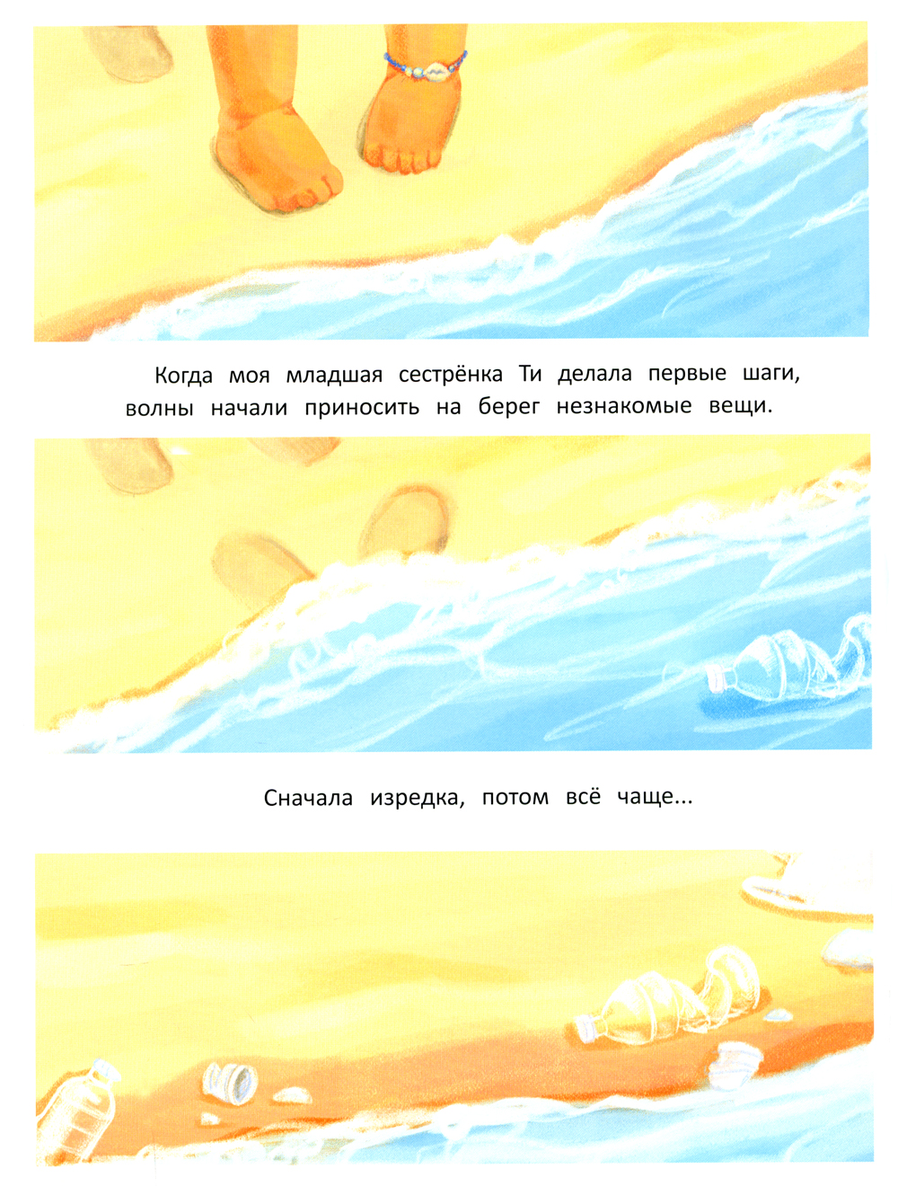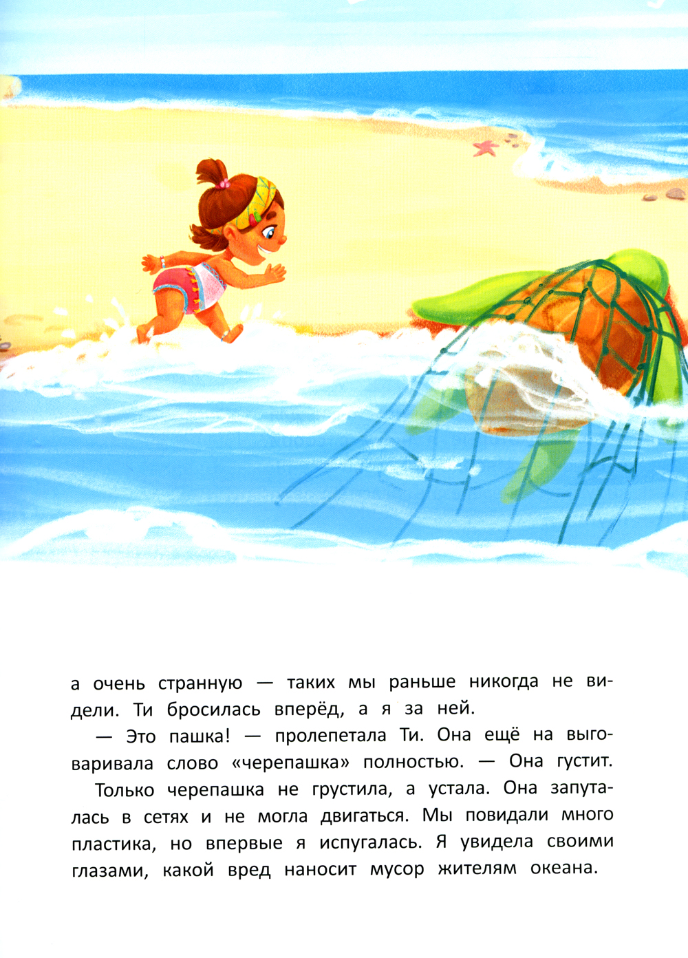 Айлин и Ти живут на небольшом острове. Вместе с шумом волн и ракушками океан стал приносить на побережье мусор, всё больше мусора. А однажды он принёс страдающих от загрязнения воды животных: запутавшуюся в сетке черепаху, застрявших в бутылке морских коньков и угодивших в целлофановый пакет медуз. В попытке помочь подводным жителям девочки знакомятся с Духом океана и отправляются в опасное путешествие к Матушке Природе. Удастся ли маленьким девочкам спасти океан? И что может делать каждый из нас для природы?| Издательство | Феникс |