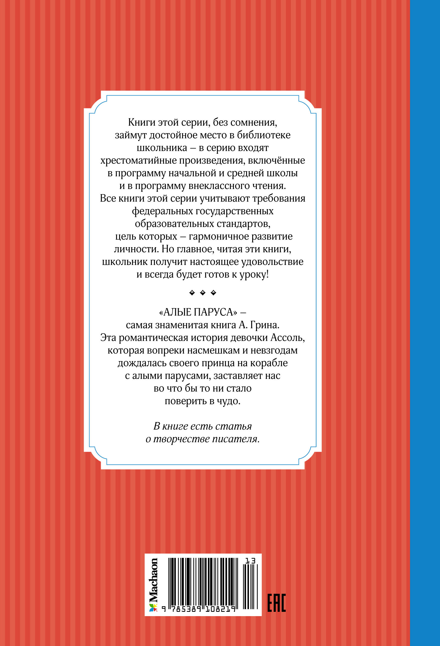 Романтическая история девочки Ассоль, вопреки невзгодам и насмешкам дождавшейся своего принца на корабле с алыми парусами, заставляет нас во что бы то ни стало поверить в чудо. Для среднего школьного возраста.| Издательство | Азбука-Аттикус Издат.группа ООО |