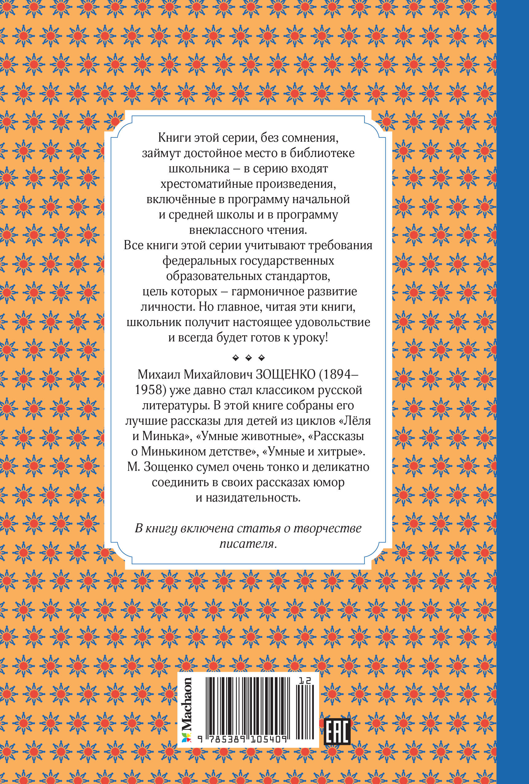 Книги этой серии, без сомнения, М.М. Зощенко займут достойное место в библиотеке школьника - в серию входят хрестоматийные произведения, включённые в программу начальной и средней школы и в программу внеклассного чтения. Все книги этой серии учитывают требования федеральных государственных образовательных стандартов, цель которых - гармоничное развитие личности. Но главное, читая эти книги, школьник получит настоящее удовольствие и всегда будет готов к уроку! Михаил Михайлович ЗОЩЕНКО (1894-1958) уже давно стал классиком русской литературы. В этой книге собраны его лучшие рассказы для детей из циклов "Лёля и Минька", "Умные животные", "Рассказы о Минькином детстве", "Умные и хитрые". М. Зощенко сумел очень тонко и деликатно соединить в своих рассказах юмор и назидательность. В книгу включена статья о творчестве писателя.| Издательство | Азбука-Аттикус Издат.группа ООО |