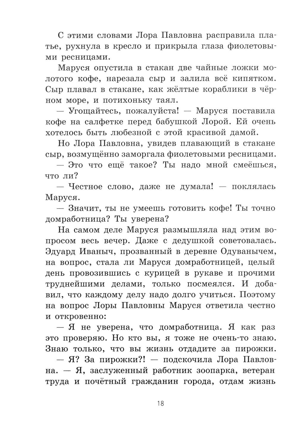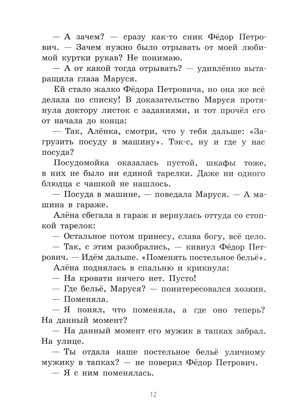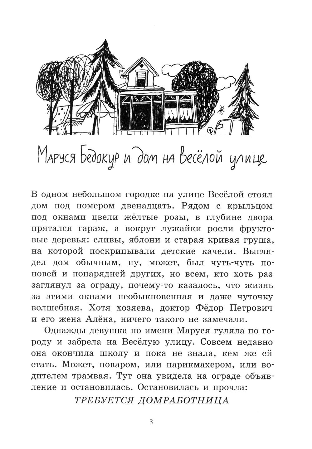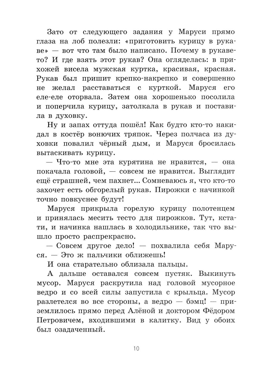 Как жить Марусе Бедокур? Ведь она в свои семнадцать все понимает буквально! И цветы подкармливает буквально - человеческой едой, и червячка заморить тоже хочет буквально - идет на огород его откапывать, и курицу в рукаве от куртки готовит... Дети Марусю за эти странности обожают, а вот хозяевам дома, куда Марусю взяли домашней помощницей, досталось. Но и доктор Федор Петрович, и его жена Алена, и бабушка Лора Павловна экзамен на доброту выдержали, и теперь Марусю любят все. Благодаря этой славной фантазерке каждый стал терпимее и добрее. В повести Натальи Смирновой и Марии Мелик-Пашаевой много остроумной словесной игры, которую поймут и оценят читатели старше 7 лет. Маруся живет в деревне Бедокурово, а работать устраивается в дом на Веселой улице, так что сразу можно догадаться, что скучно не будет. Трудолюбивая Маруся старается изо всех сил, а выходит у нее одна чепухня чепуховская. Хорошо, что хозяева попались понимающие: удивляются Марусиным фокусам, едва сдерживая смех. Маруся на них за это не обижается, она вообще очень добрая, умеет дружить, и шестилетняя Женя в ней души не чает. А еще Маруся гениально печет прирожки. И за эти пирожки бабушка Жени Лора Павловна - заслуженный работник зоопарка - жизнь отдаст. Пирожкам в книге отводится важная роль, так же как и тощенькой серенькой кошечке: на нее Маруся в первый же день поменяла постельное белье и потому назвала Простынкой. Из-за Простынки на улице Веселой разыгрывается целое сражение!