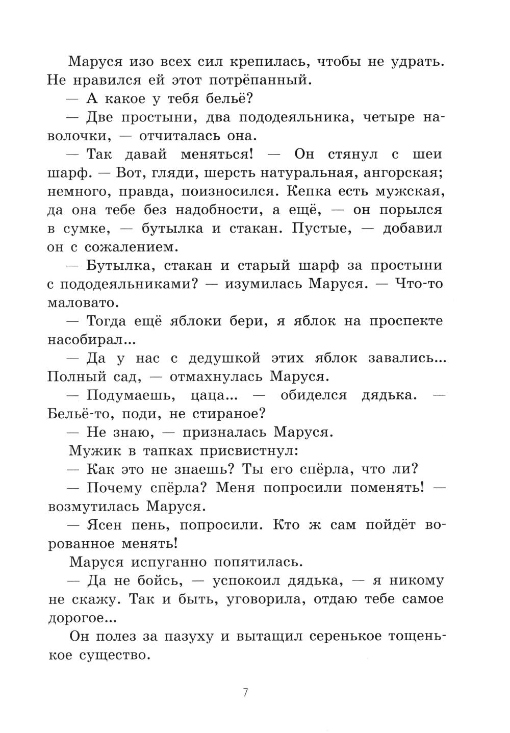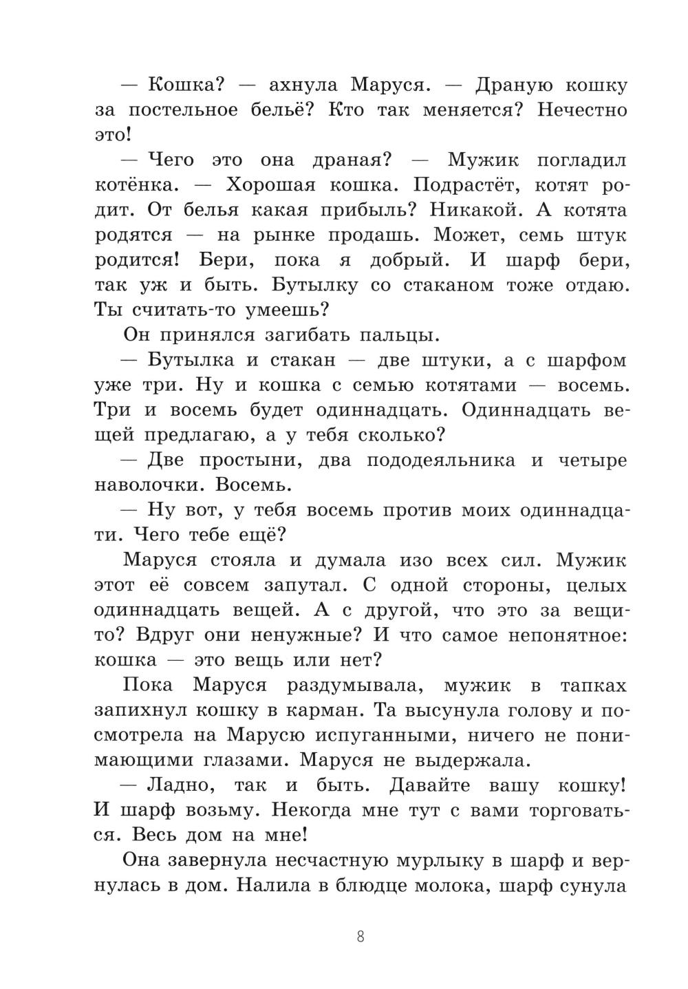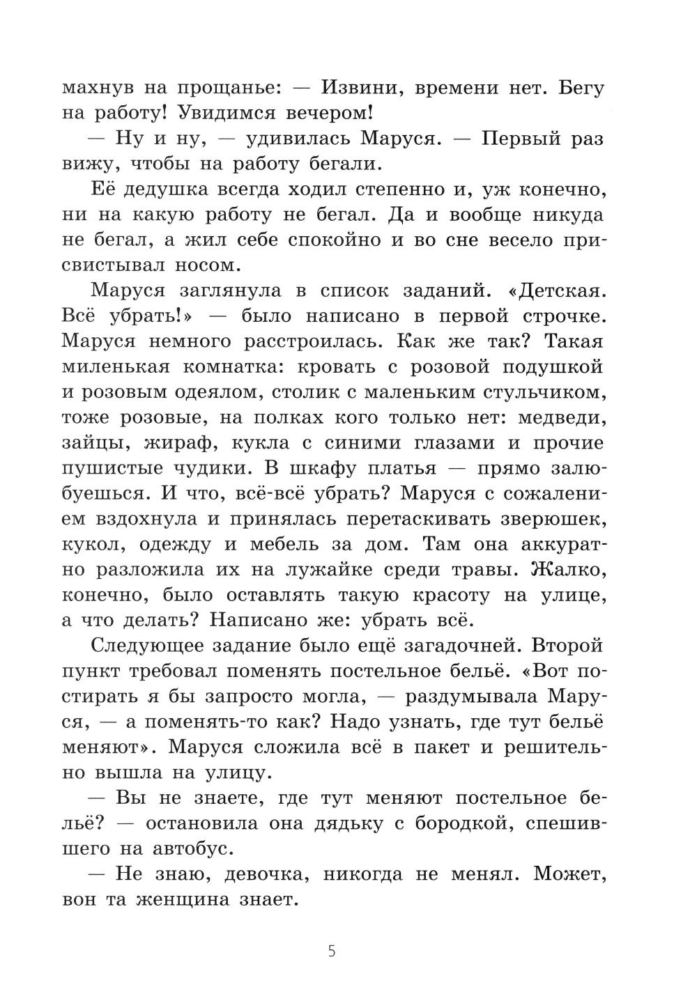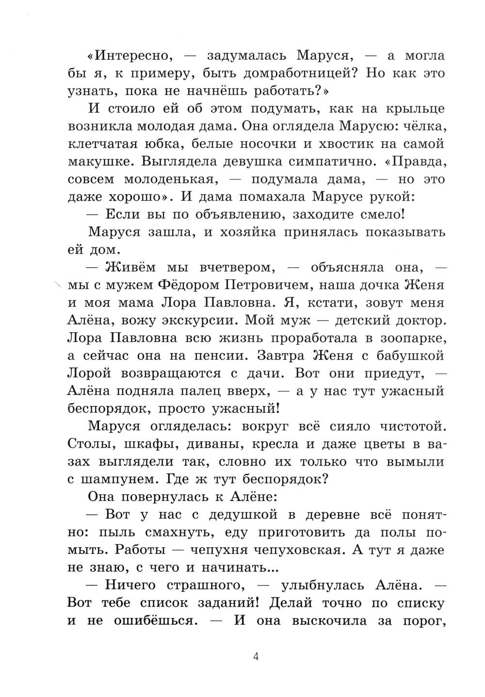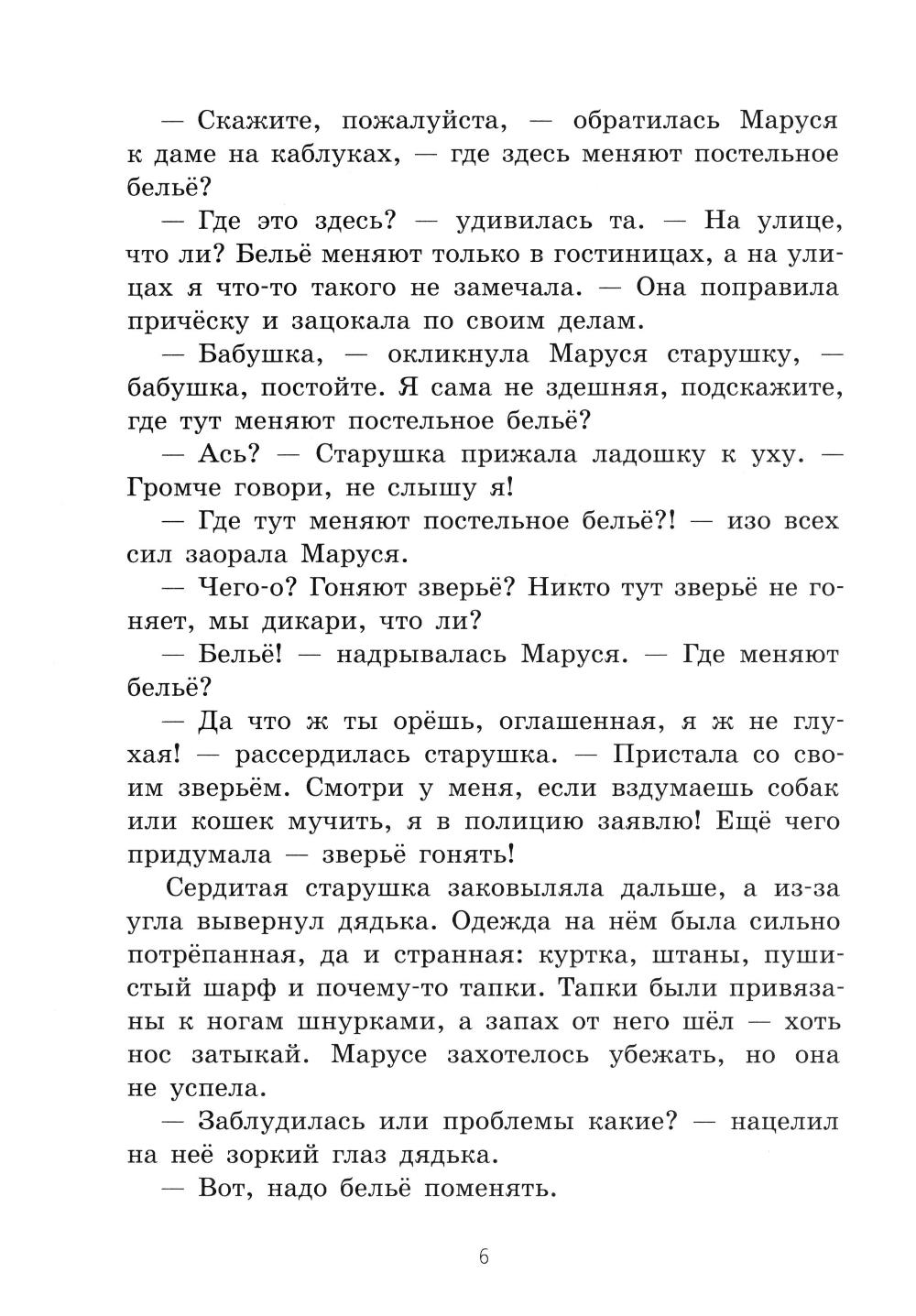Как жить Марусе Бедокур? Ведь она в свои семнадцать все понимает буквально! И цветы подкармливает буквально - человеческой едой, и червячка заморить тоже хочет буквально - идет на огород его откапывать, и курицу в рукаве от куртки готовит... Дети Марусю за эти странности обожают, а вот хозяевам дома, куда Марусю взяли домашней помощницей, досталось. Но и доктор Федор Петрович, и его жена Алена, и бабушка Лора Павловна экзамен на доброту выдержали, и теперь Марусю любят все. Благодаря этой славной фантазерке каждый стал терпимее и добрее. В повести Натальи Смирновой и Марии Мелик-Пашаевой много остроумной словесной игры, которую поймут и оценят читатели старше 7 лет. Маруся живет в деревне Бедокурово, а работать устраивается в дом на Веселой улице, так что сразу можно догадаться, что скучно не будет. Трудолюбивая Маруся старается изо всех сил, а выходит у нее одна чепухня чепуховская. Хорошо, что хозяева попались понимающие: удивляются Марусиным фокусам, едва сдерживая смех. Маруся на них за это не обижается, она вообще очень добрая, умеет дружить, и шестилетняя Женя в ней души не чает. А еще Маруся гениально печет прирожки. И за эти пирожки бабушка Жени Лора Павловна - заслуженный работник зоопарка - жизнь отдаст. Пирожкам в книге отводится важная роль, так же как и тощенькой серенькой кошечке: на нее Маруся в первый же день поменяла постельное белье и потому назвала Простынкой. Из-за Простынки на улице Веселой разыгрывается целое сражение!