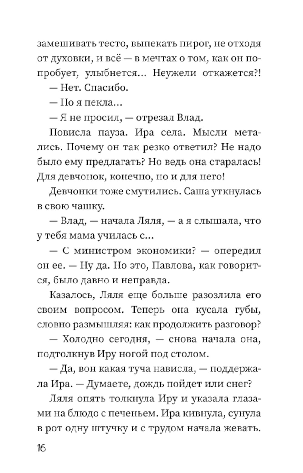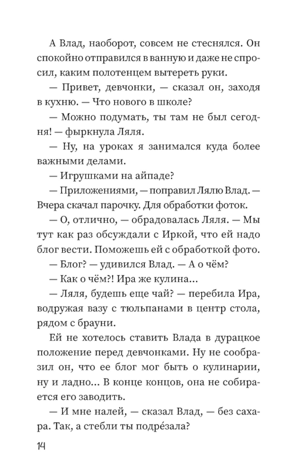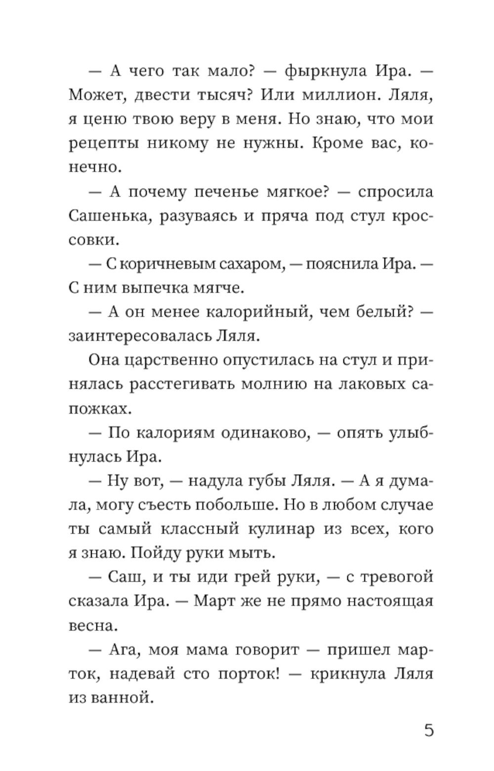 Ира любит готовить. Она смело экспериментирует на кухне, вдохновляясь кулинарными шоу и постами блогеров. Все карманные деньги она тратит на сборники рецептов и продукты для очередного шедевра. Подруги готовы драться за лишний кусочек ее брауни и мягкого овсяного печенья. А еще Ира любит Влада. Он красивый, спортивный и уверенный в себе. Он выбрал именно ее, и Ире завидует вся школа. Но Влад категорически против ее увлечения. Да и родители призывают больше сил отдавать учебе. Все-таки десятый класс, пора определяться с будущей профессией. Не в кулинарный же колледж поступать?! Юлия Кузнецова - российская писательница, переводчик, автор многочисленных книг для детей и подростков. Лауреат премии имени В. П. Крапивина, премий «Заветная мечта» и «Книгуру». Юлия Кузнецова отдает предпочтение жанру психологической прозы, ведь через нее можно ответить на самые актуальные вопросы понятным языком. Воздушные и нежные иллюстрации Маши Судовых дополняют настроение книги. Для среднего и старшего школьного возраста.