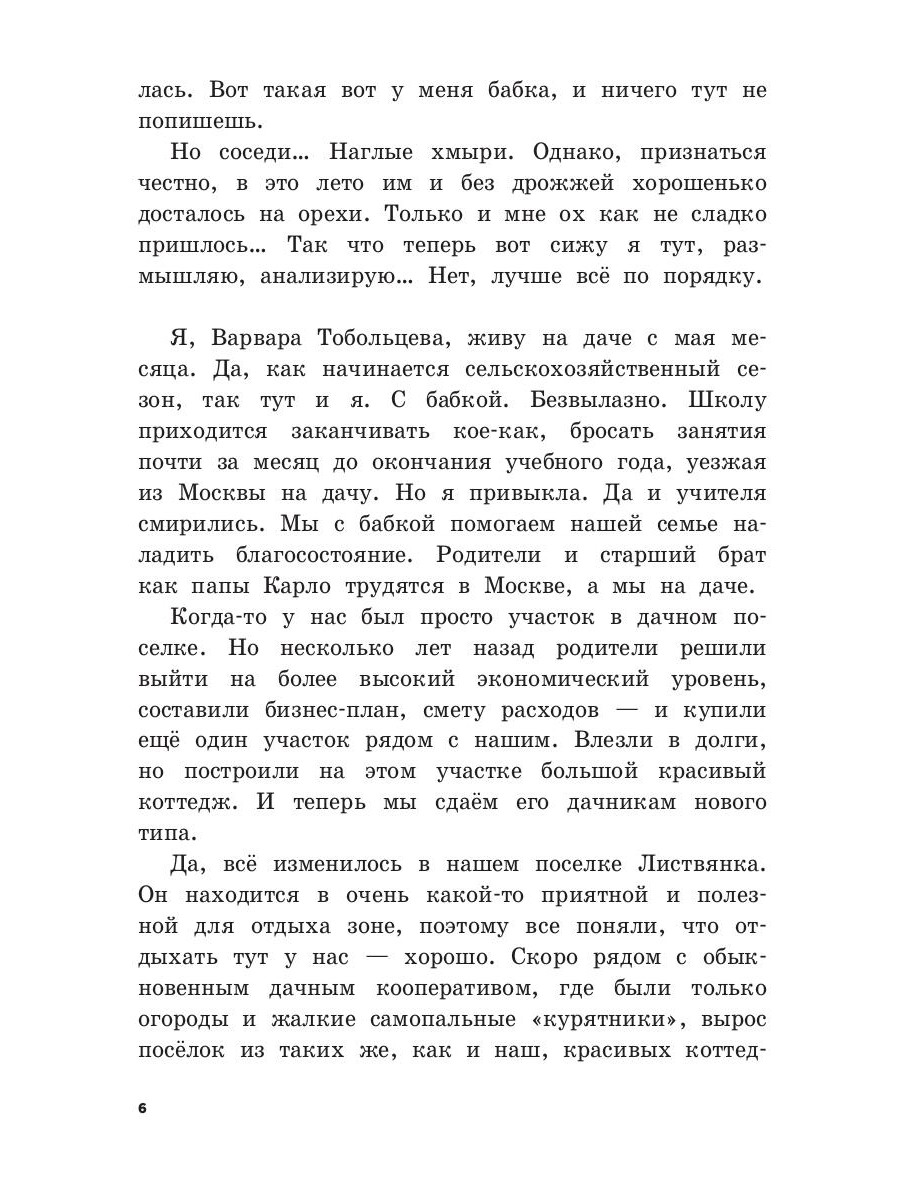 Варя Тобольцева - девочка-ужас. Её боится весь дачный поселок. Она грубит, ругается, ворует огурцы с чужих участков, а потому приличному мальчику лучше держаться от неё подальше. Так считала мама Руслана, с которым Варя решила подружиться. Руслан послушался маму и предал свою подругу. Стало быть, дружбы нет, любви нет, верить никому нельзя... А может, всё не так? И Руслан не предатель, и Варя - никакой не ужас, а девчонка, что от зари до зари трудится на огороде, да ещё и пытается поймать дачных воров. Так бы никогда не разобралась эта парочка в своих отношениях, если бы не появился... третий. Возможно, лишний...