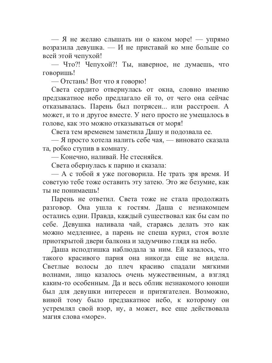 Хиппи Олег - загадочный, умный, красивый, разительно отличающийся от тупых парней, с которыми Даша общается в школе, на улице, на вечеринках... Он - воплощенная мечта любой девчонки, которая ждет «принца под алыми парусами»... Однако когда Даша по наивности принимает предложение «своего принца» отправиться с ним и его друзьями к морю, в сказку вторгается суровая реальность. И любить Олега - настоящего, не идеального, не придуманного - Даше будет совсем не просто... Так не окажется ли однажды счастливая встреча встречей роковой?..| Издательство | Т8 RUGRAM |