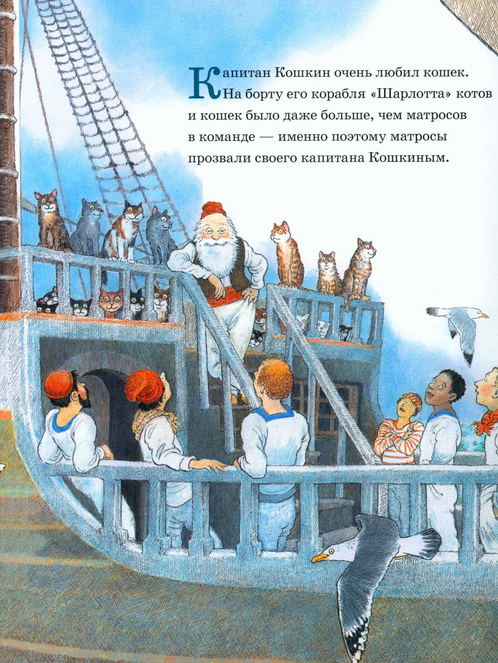 Капитан Кошкин больше всего на свете любил кошек, поэтому на борту его торгового судна кошек было даже больше, чем матросов в команде. Обычно в торговле преуспевает тот, кто может выменять что-нибудь ненужное на что-нибудь нужное, а всё, что было нужно капитану Кошкину - это кошки. Капитана Кошкина часто можно было увидеть в каком-нибудь порту выменивающим очередную облезлую кошку на драгоценную вазу, и именно поэтому другие купцы смеялись над ним и считали его чудаком и неудачником. Но однажды капитан Кошкин попал в такую историю, где главная страсть его жизни, кошки, оказались бесценным активом и принесли чудаку-капитану богатство и любовь окружающих... Эта трогательная и поучительная история рассказывает о том, что каждый, кто следует зову своего сердца, искренне увлечен своим делом и делает его хорошо, обязательно будет востребован и вознагражден окружающими.| Издательство | Добрая книга |