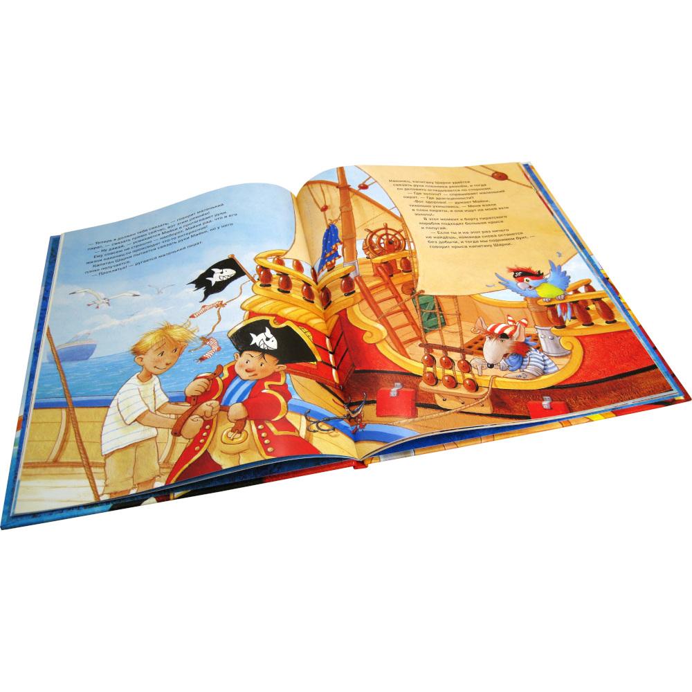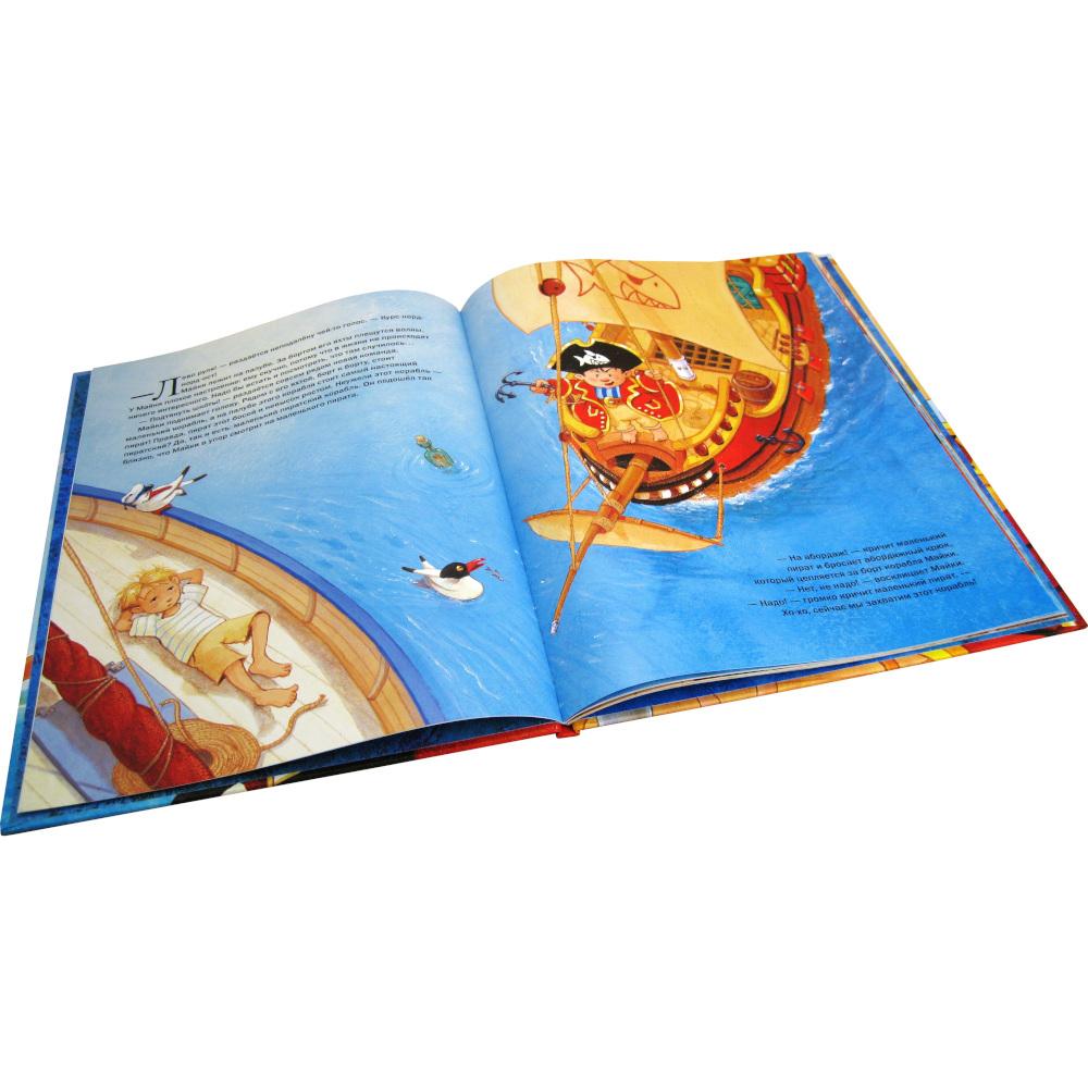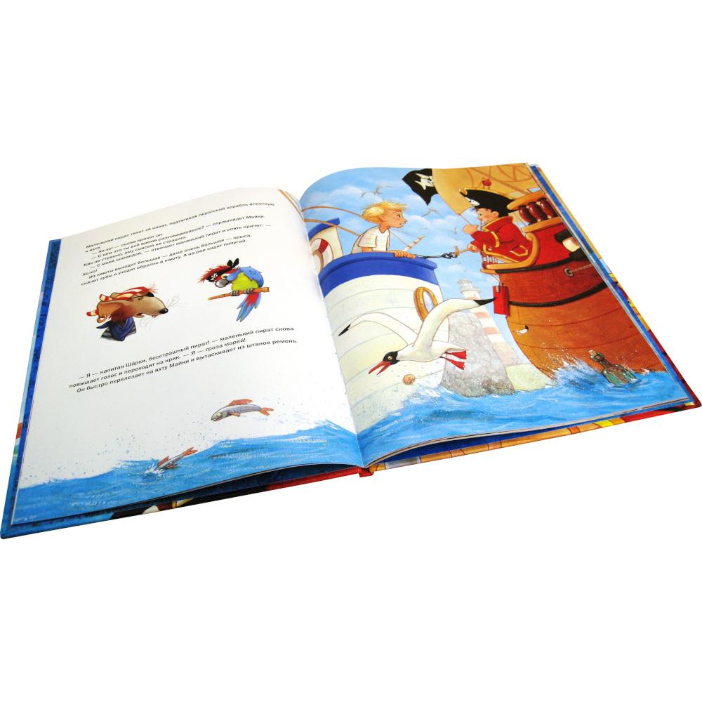 - На абордаж! - кричит капитан Шарки и прыгает на палубу яхты, где сидит и скучает мальчик по имени Мaйки. Наконец-то в жизни Майки происходит что-то интересное: он оказывается на настоящем пиратском корабле в компании маленького пирата и его команды! Капитан Шарки и Майки быстро становятся друзьями. В бутылке, которую капитан Шарки подобрал в океане, они находят старую пожелтевшую карту острова, где зарыт клад, и отправляются на поиски сокровищ...| Издательство | Добрая книга |