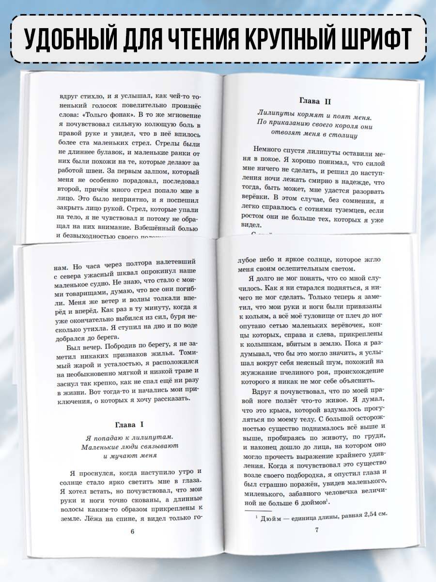 Отважному и смелому мореплавателю Гулливеру повезло - он побывал в таких фантастических странствиях, что и поверить сложно! И действительно, ну разве можно в одночасье стать лилипутом в стране великанов, где самый обычный град может представлять для человека смертельную опасность? Правда ли, что существуют разумные добрые существа гуигнгнмы, похожие на лошадей? Возвращаясь каждый раз из такого путешествия, Гулливер рассказывал своим соотечественникам об удивительных обитателях других миров. Теперь пришёл ваш черёд узнать о них.