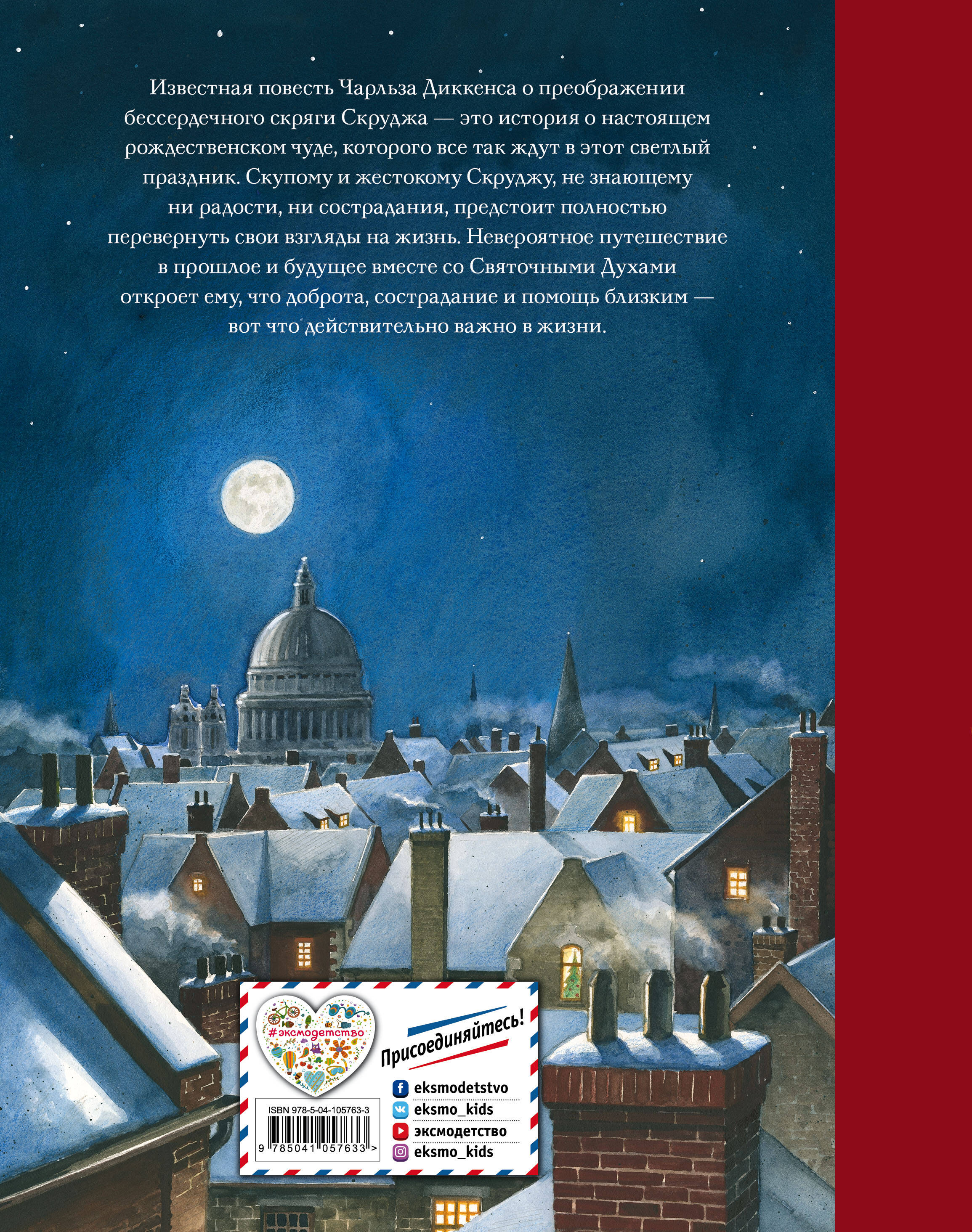 Книга, которая найдет отклик в сердцах читателей любого возраста, поможет поверить в чудеса и силу добра! История о невероятном преображении старого скряги Скруджа, придуманная Чарльзом Диккенсом, - это одно из самых популярных произведений в зимние праздники. В канун Рождества скупого и упрямого Скруджа, никогда не знавшего ни радости, ни сострадания, посещают три Святочных Духа. Вместе с ними Скрудж отправляется в фантастическое путешествие во времени и встречается со своим прошлым и будущим, чтобы произошло настоящее рождественское чудо и старый скряга, наконец, раскрыл своё сердце и понял, как важны понимание, щедрость и доброта. Книгу проиллюстрировал современный немецкий художник Торбен Кульманн.| Издательство | ООО "Издательство "Эксмо" |