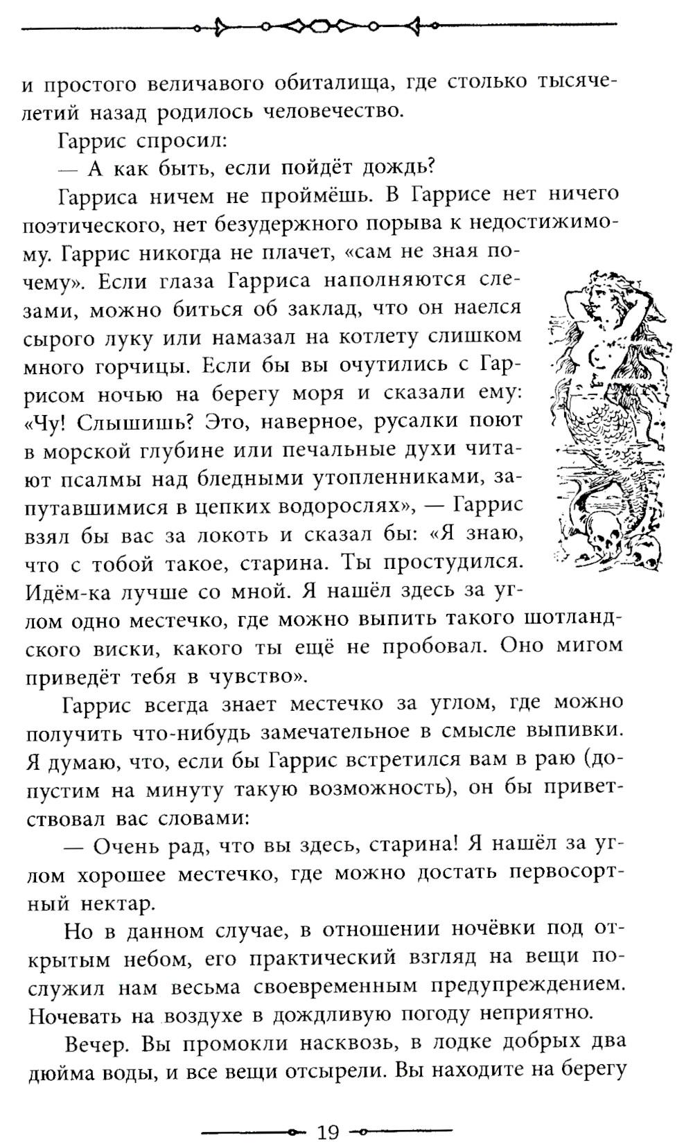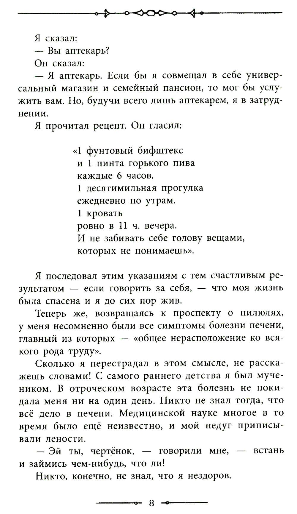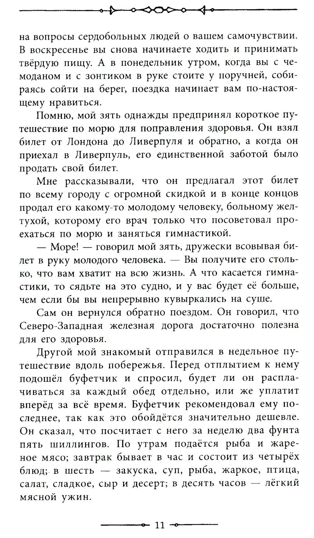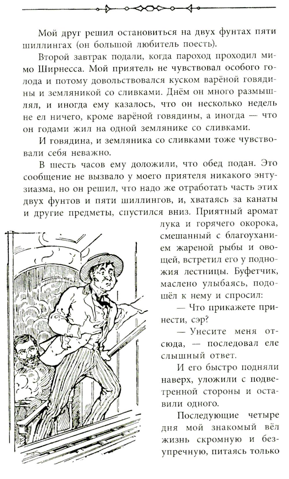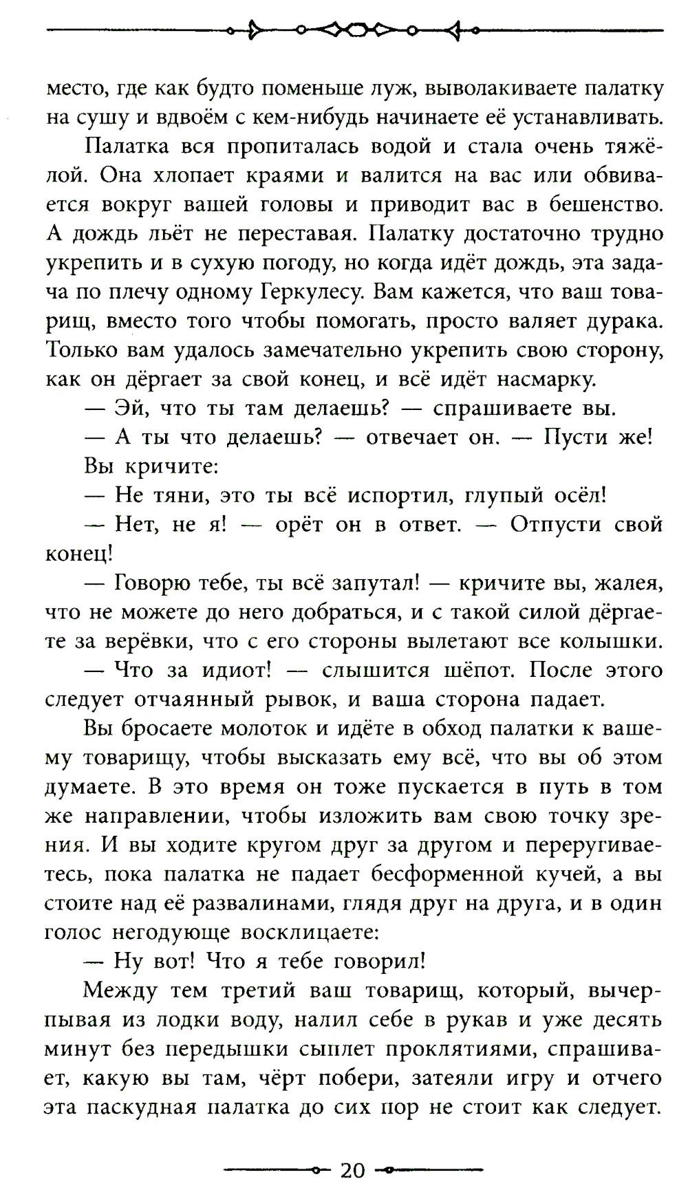 Трое друзей вместе с фокстерьером Монморенси отправляются на лодочную прогулку по Темзе. На своем пути они столкнутся с препятствиями, которые неизбежно преследуют любого путешественника: намертво запутавшаяся бечева, неоткрывающиеся консервы, отвратительная погода. Но наши друзья не теряют присутствия духа и из любой ситуации выходят с юмором. Иллюстрации Альфреда Фредерикса.