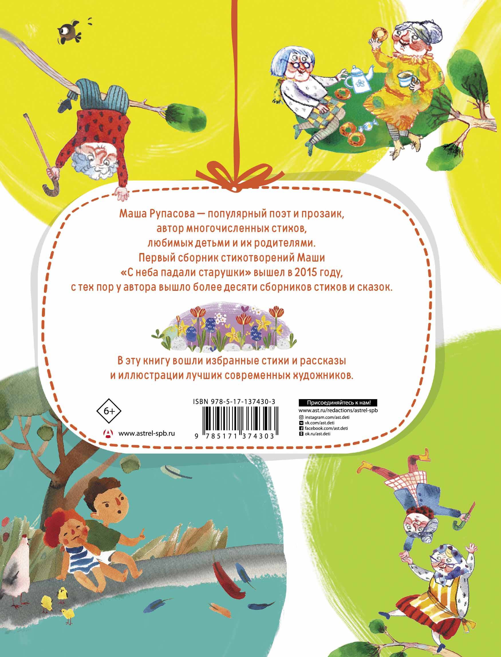 Маша Рупасова - популярный поэт и прозаик, автор многочисленных стихов, любимых детьми и их родителями. Первый сборник стихотворений Маши "С неба падали старушки" вышел в 2015 году, с тех пор у автора вышло более десяти сборников стихов и сказок. В эту книгу вошли избранные стихи и рассказы и иллюстрации лучших современных художников.| Издательство | Издательство "АСТ" |