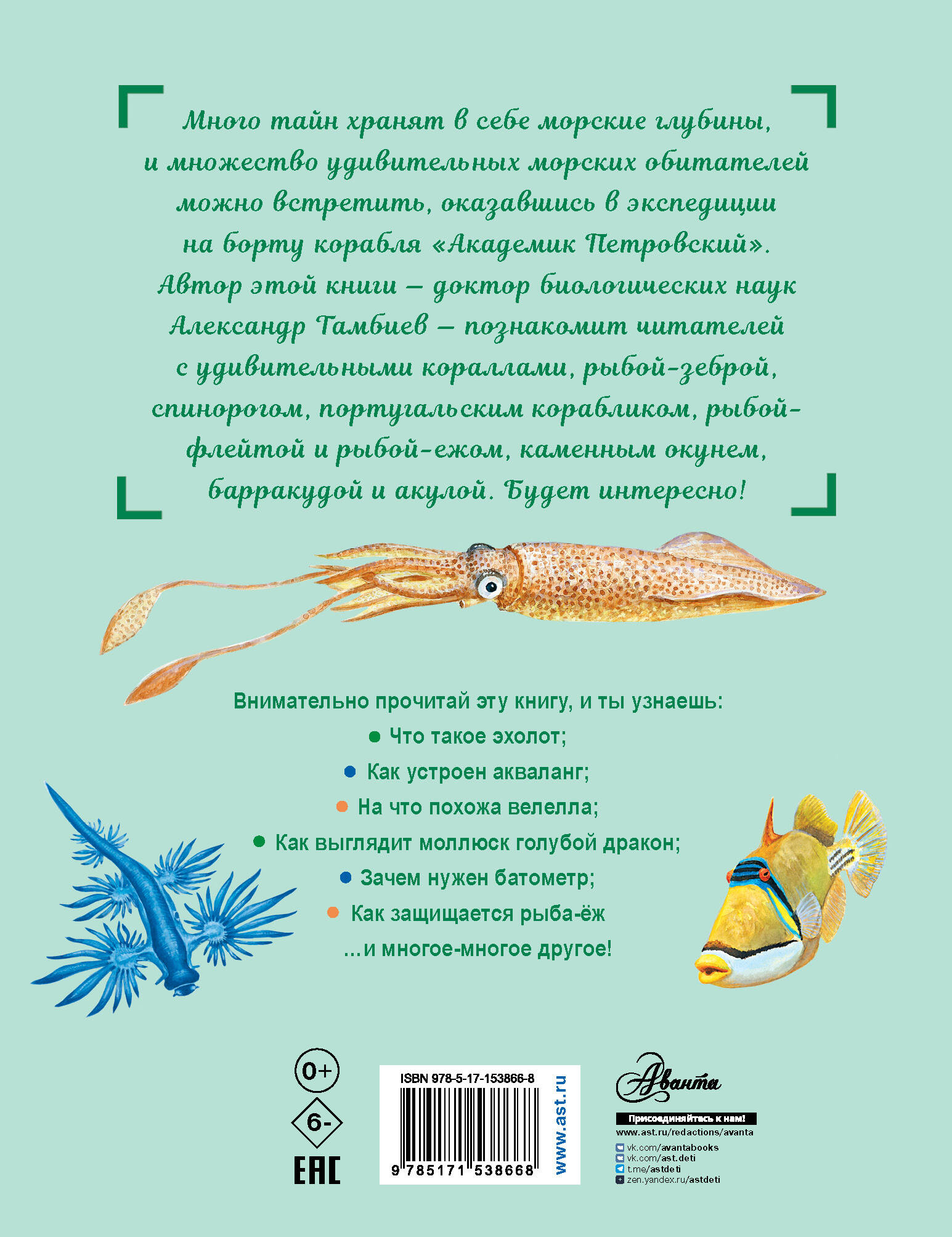 Увлекательный, полный романтики морских приключений рассказ "Как увидеть морское дно?" известного учёного, доктора биологических наук, популяризатора науки А. Тамбиева о научной экспедиции в Красном море. Из этого рассказа ты узнаешь, какими приборами учёные пользуются для исследования моря и морского дня, как устроен научный корабль и акваланг, как происходит погружение под воду и каких удивительных морских обитателей учёные изучают. Для младшего школьного возраста.