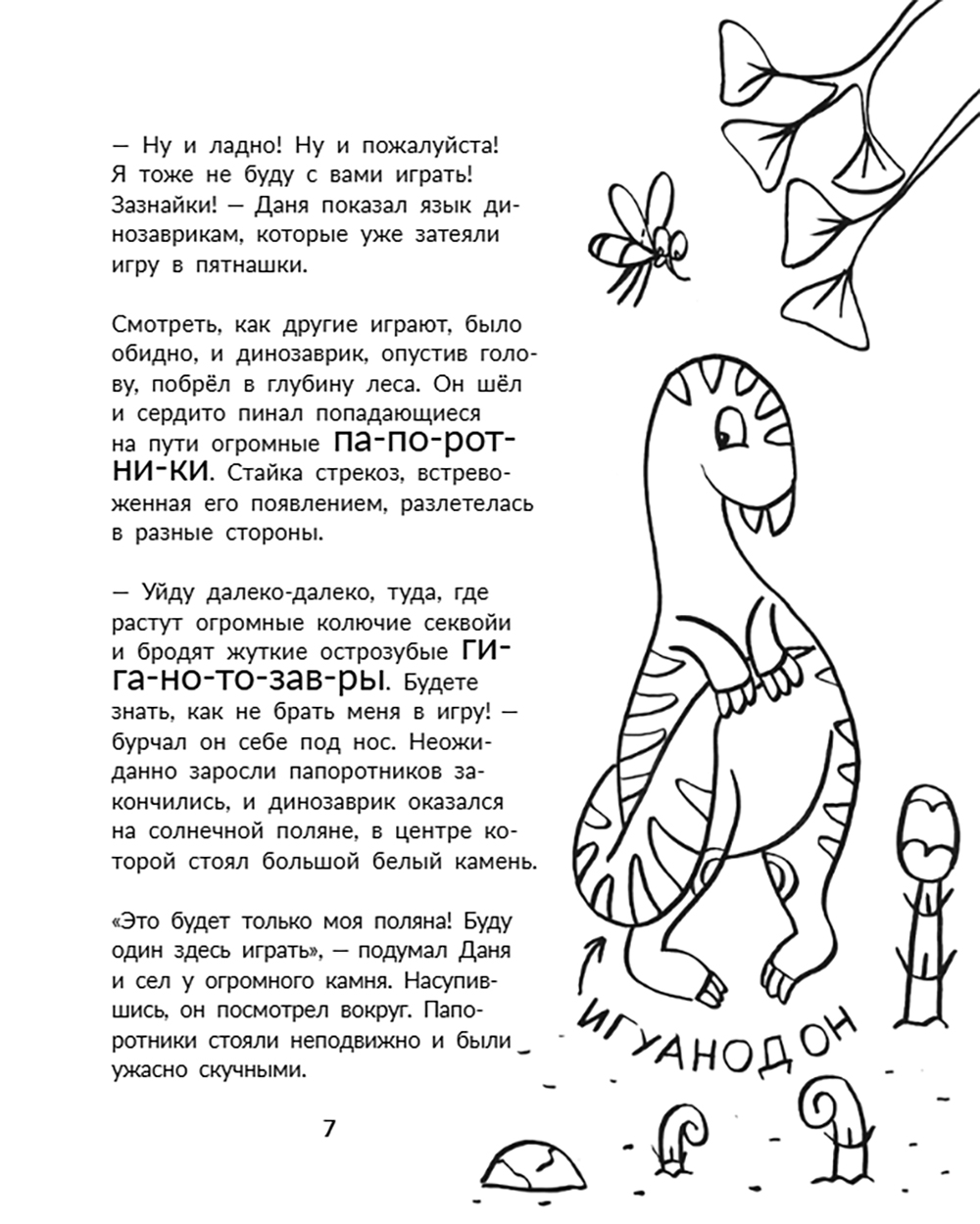 Как быть, если хочешь попасть в команду самых-самых, но плавать, вытягивать шею до неба или хотя бы громко гудеть у тебя не получается? Маленький игуанодон Даня готов поверить, что он неумеха, как вдруг благодаря птеродактилю обнаруживает у себя особый «рисовальный» коготь! Им можно нарисовать реку, скалу, других динозавров и даже декорации к театру теней, который умеет показывать его новый друг! Подготовь фломастеры, открой книжку и помоги маленькому динозаврику отыскать свои способности и подготовиться к театральной премьере. Заодно ты узнаешь, чем отличаются динозавры, научишься показывать театр теней, поиграешь в прятки в доисторическом лесу и потренируешься в счёте и чтении. Для младшего школьного возраста.| Издательство | Абраказябра |