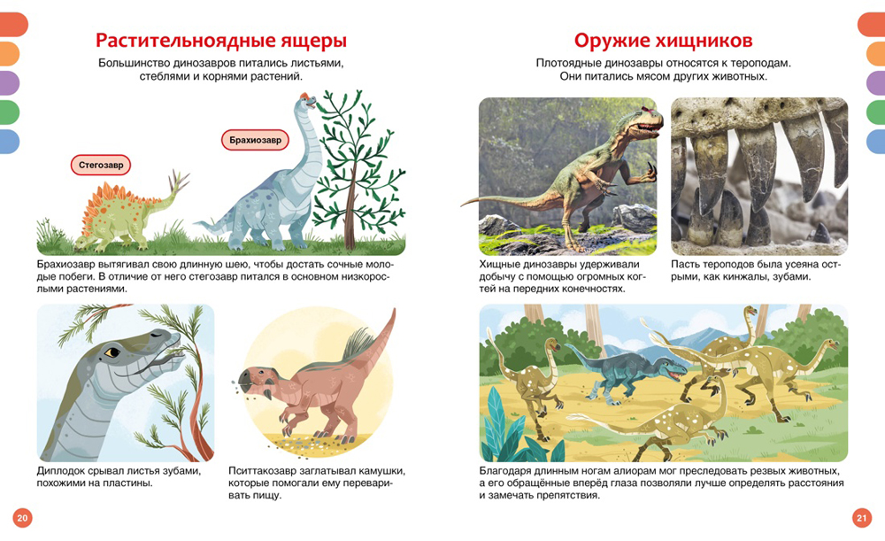 В этой книге представлены не только самые знаменитые, но также недавно открытые динозавры - грозные хищники, мирные гиганты и юркие охотники. У одних были острые клыки и огромные когти, у других - необычные выросты на голове и теле, а у некоторых даже имелся клюв или яркое оперение! Юные читатели не только узнают всё о древних ящерах, но также познакомятся с животными, которые обитали на Земле вместе с динозаврами. В книгах серии - только самая актуальная информация и самые современные иллюстрации! И это ещё не всё: в конце каждой книжки собраны увлекательные задания и игры, которые помогут весело провести время и повторить изученное.| Издательство | Махаон |