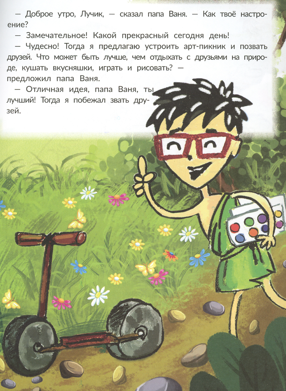 Развивающие истории от папы Вани уникальны не только своим содержанием, но и обучающими фрагментами, а также пошаговыми уроками рисования. Рисуйте вместе с автором на его канале - отсканируйте QR-код и переходите по ссылке. В этой книге вы познакомитесь с забавными динозаврами, которые подружились и организовали арт-пикник.| Издательство | Феникс |