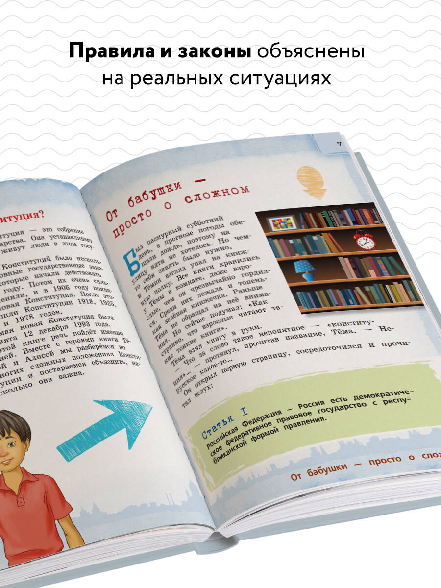 Эта книга о том, что законы могут быть интересны не только взрослым! Здесь в легкой и интересной форме рассказано о самых основных законах нашей страны: о государственных символах, правах человека, обязанностях человека в обществе, о функциях президента, правительства и важности этих законов в жизни любого человека. При этом вы не найдете здесь скучного перечисления статей, все правила поведения в обществе привязаны к конкретным случаям, которые часто можно увидеть в реальной жизни так, что сразу становится ясна причина их появления и необходимость. С этой книгой ребенку не придется скучать. Множество качественных ярких иллюстраций и фотографий и описание различных жизненных ситуаций заинтересуют каждого ребенка, взявшего в руки эту книгу. Эта книга для детей и их родителей, воспитателей в детских садах и преподавателей начальных классов. Для тех, кто хочет сделать обучение детей интересным и увлекательным и привить детям с ранних лет уважение к законам и понимание их важности в жизни каждого человека.| Издательство | Эксмо |