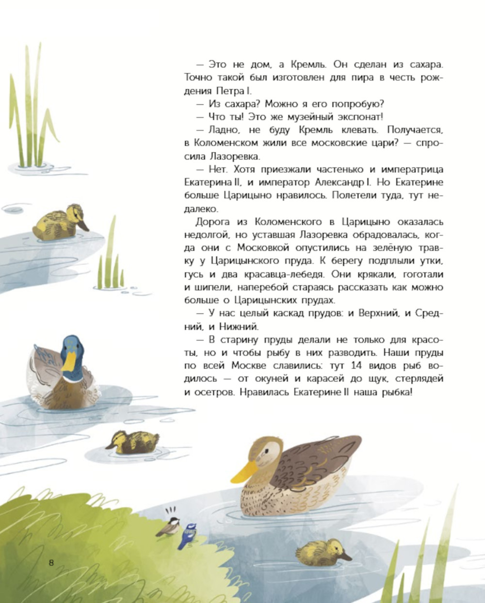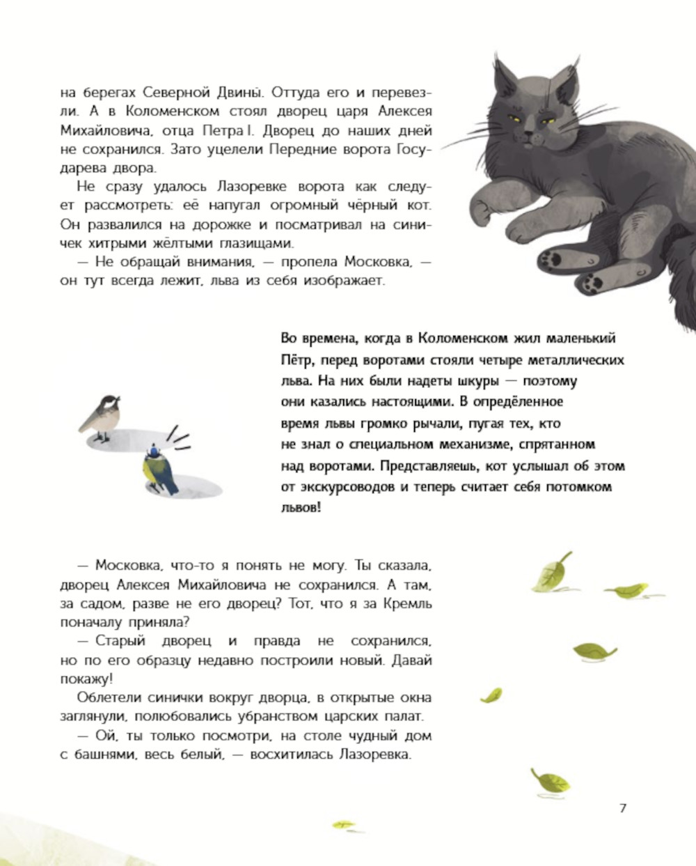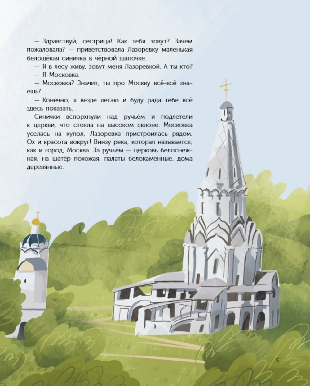 Любопытная синица Лазоревка отправляется в Москву, чтобы проверить, так ли хороша столица, как о ней говорят. Знакомство с синицей Московкой превращает путешествие в настоящее приключение: неутомимые птички исследуют достопримечательности, рассматривают детали, о которых известно только настоящим краеведам, знакомятся с удивительными обитателями города. Вместе с синичками вы узнаете, что за львы охраняли ворота в Коломенском; на какой улице появился первый тучерез; куда козерог из зоопарка сбегал; почему один из районов называли Новым Болваньем и многое-многое другое. Для младшего школьного возраста.| Издательство | Абраказябра |