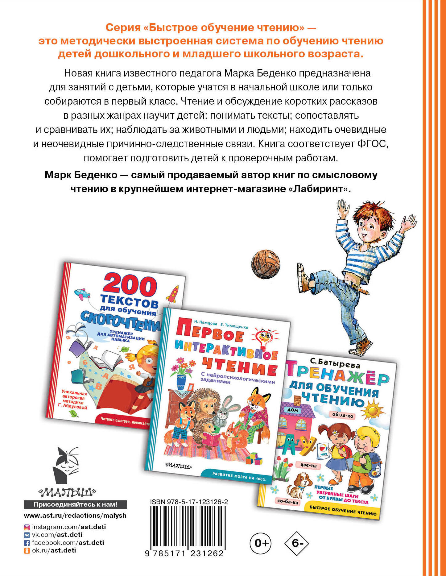 Новая книга известного педагога Марка Беденко, адресована родителям, чьи дети учатся в начальной школе или только собираются в первый класс. Чтение и обсуждение коротких рассказов в разных жанрах научит детей: понимать тексты; сопоставлять и сравнивать их; наблюдать за животными и людьми; находить очевидные и неочевидные причинно-следственные связи. Книга соответствует ФГОС, помогает подготовить детей к проверочным работам. Марк Беденко - самый продаваемый автор книг по смысловому чтению в "Лабиринте". Для старшего дошкольного и младшего школьного возраста| Издательство | ИЗДАТЕЛЬСТВО "АСТ" |