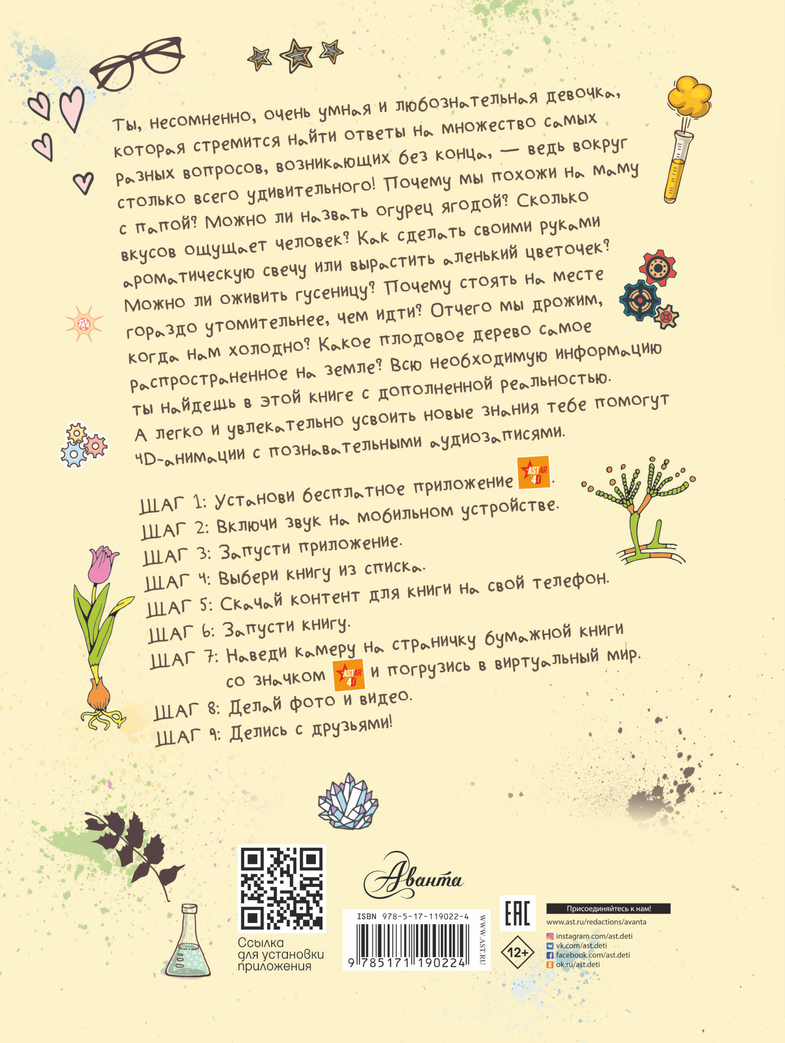 Ты хочешь знать, как на нашей планете появилась жизнь? Какие животные обитают на ней? Как устроен каждый человек на Земле? Сколько у нас костей, мышц и волос? А может, ты хочешь вырастить аленький цветочек или сделать ароматическую свечку своими руками? Прочитав эту книгу, ты узнаешь множество интересной и полезной информации обо всех живых существах нашей планеты, изучишь строение и функции человеческого организма и сможешь удивлять всех подруг забавными и познавательными экспериментами. А дополненная 4D-реальность в виде объемных анимаций, снабженных информативными аудиозаписями, поможет запомнить даже самые сложные факты быстро, легко и весело. Для среднего и старшего школьного возраста.| Издательство | ИЗДАТЕЛЬСТВО "АСТ" |