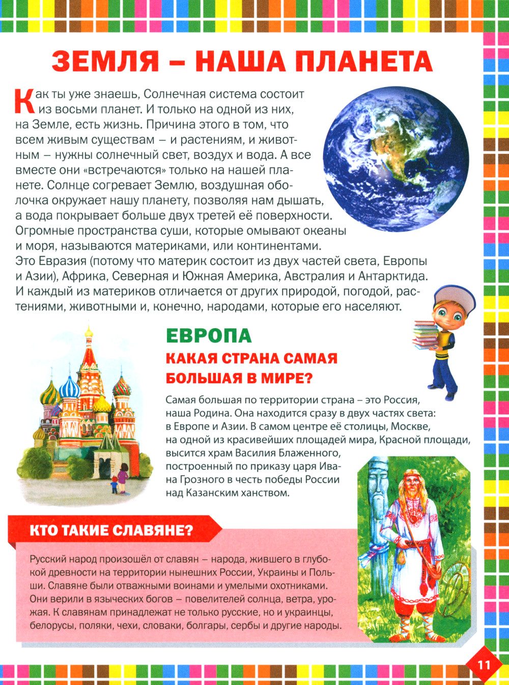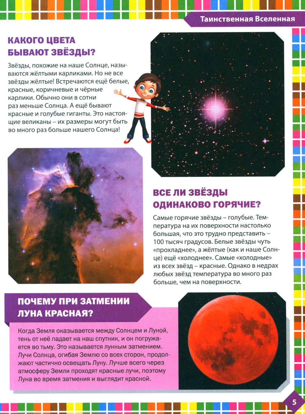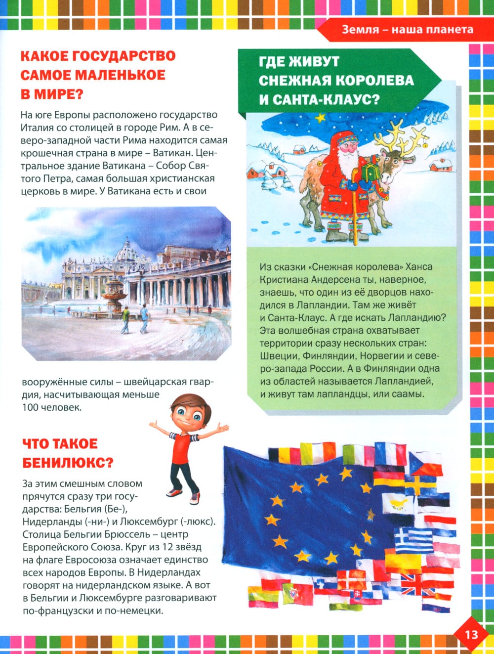 Уважаемые родители! На страницах нашей красочной энциклопедии вы найдёте краткие и понятные ответы на бесконечные вопросы вашего почемучки: какого цвета бывают звёзды, далеко ли ехать от Москвы до Владивостока, что изобрели китайцы, где можно увидеть пернатого змея, кто такие птерозавры и как защищался анкилозавр. Вместе с ребёнком вы также сможете прочитать о разнообразных животных и растениях, обитающих на нашей планете, узнать о происхождении самых разных вещей: от соли и хлеба до хлопка и нефти.| Издательство | Владис |