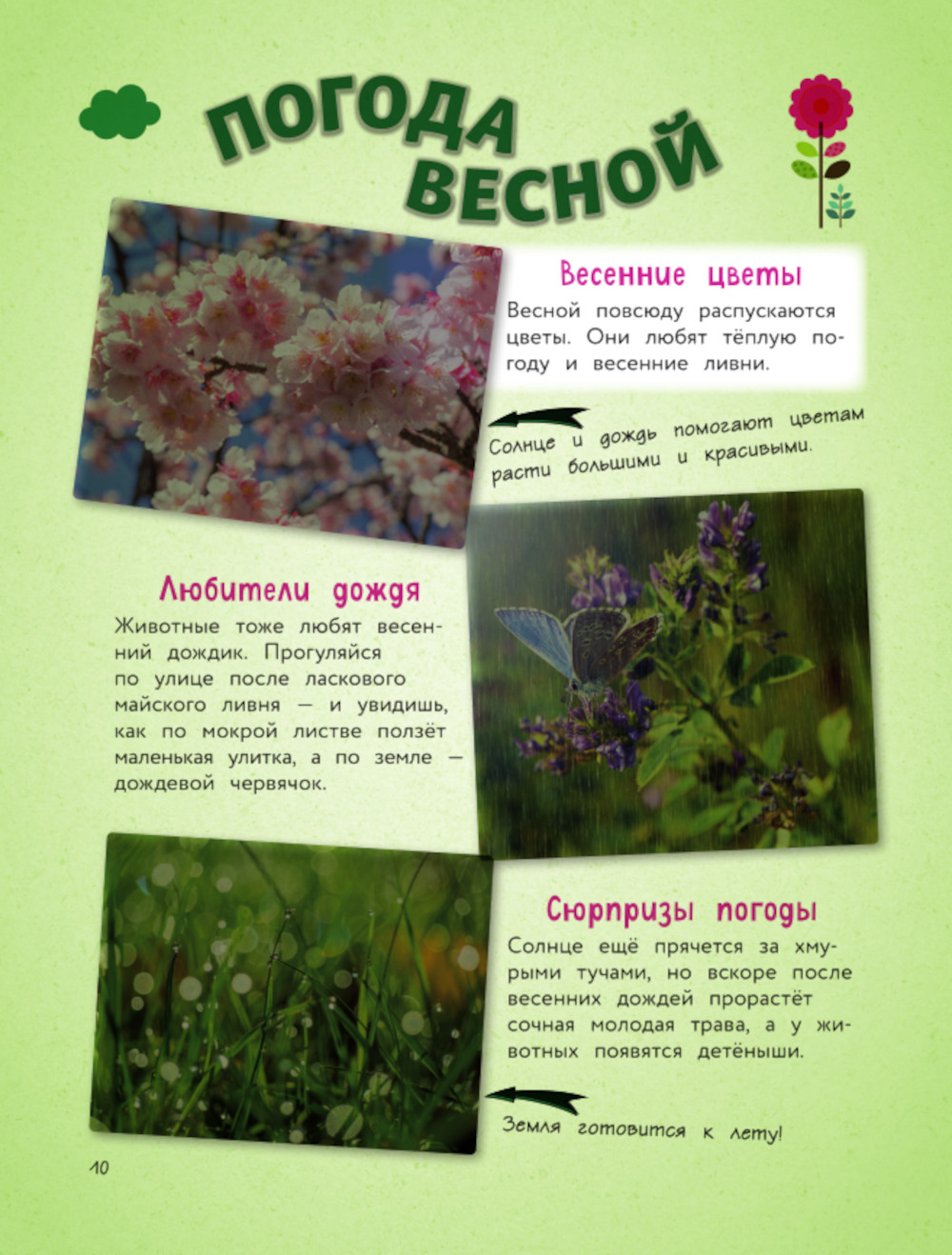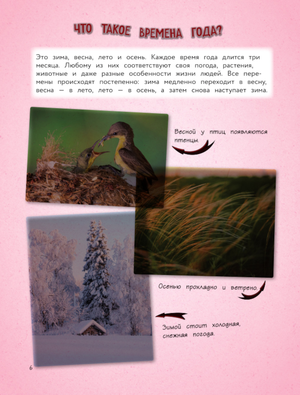 В этой красочной подарочной энциклопедии ребят ждёт необычайный мир природы! На каждом развороте - любопытные факты и большие яркие фотографии, которые помогут узнать много нового о временах года и сопровождающих их явлениях, о том, почему день сменяет ночь, о лесах и лугах, океанах и реках, о цветах, деревьях и других растениях. Книга предназначена для детей младшего школьного возраста.| Издательство | Эксмо |