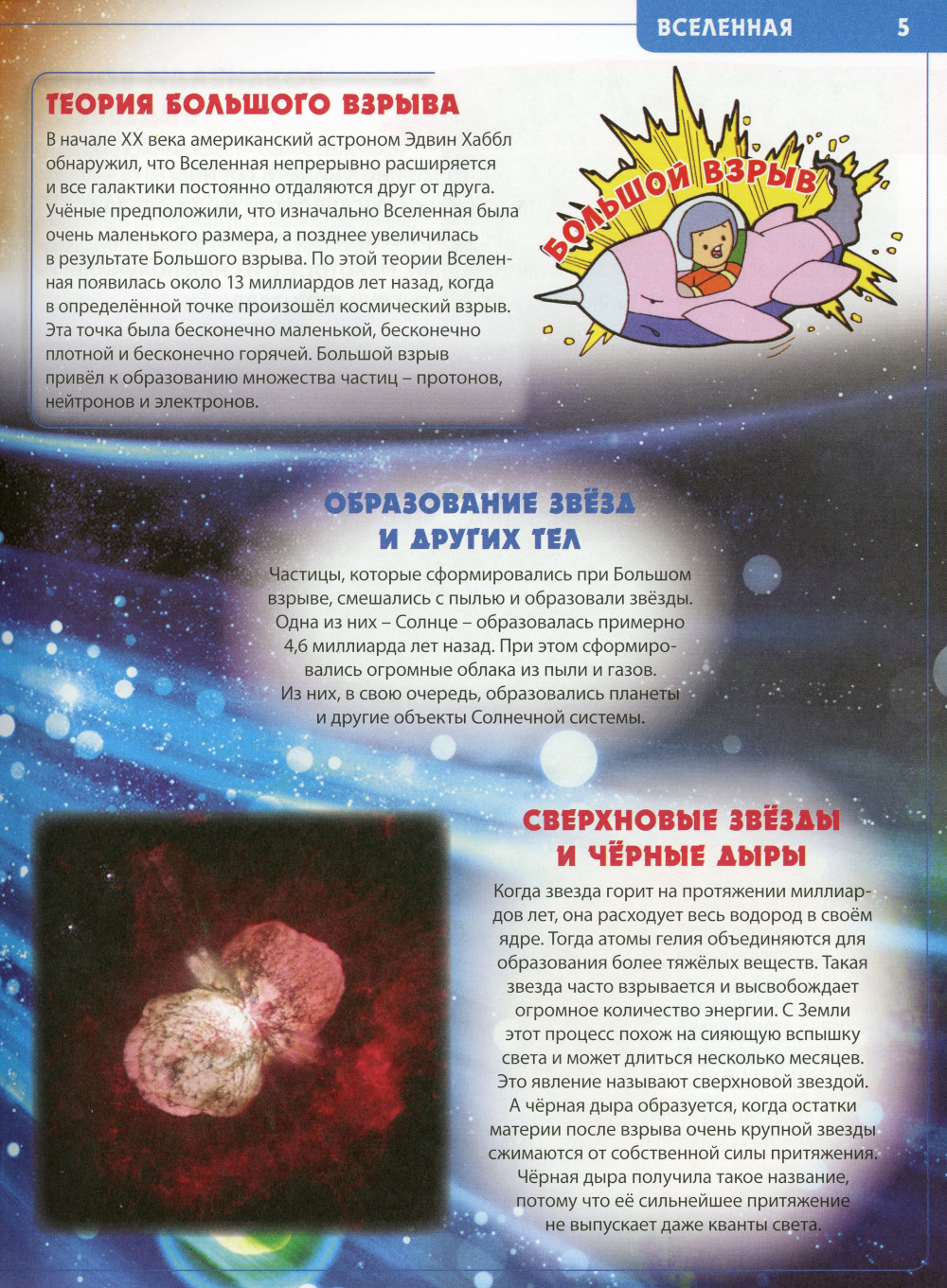 Знаешь ли ты, что такое чёрная дыра? Когда на нашей планете появился первый человек и кто изобрёл телевизор? Почему ты всегда падаешь на землю, а космонавты «летают» внутри космической станции? Какая птица умеет летать задом наперёд, и для чего ящерицам язык? Ответы на эти и многие другие вопросы ты найдёшь в нашей иллюстрированной энциклопедии! Из этой книги ты узнаешь, когда полетел первый самолёт, где живут обезьяны-«призраки» и сколько зубов у акулы. Ты увидишь самый большой цветок и самую маленькую птичку на Земле, прочитаешь про древнюю рептилию, живущую в наше время, и про современного домашнего робота. Вперёд, к новым знаниям и открытиям!| Издательство | Владис |