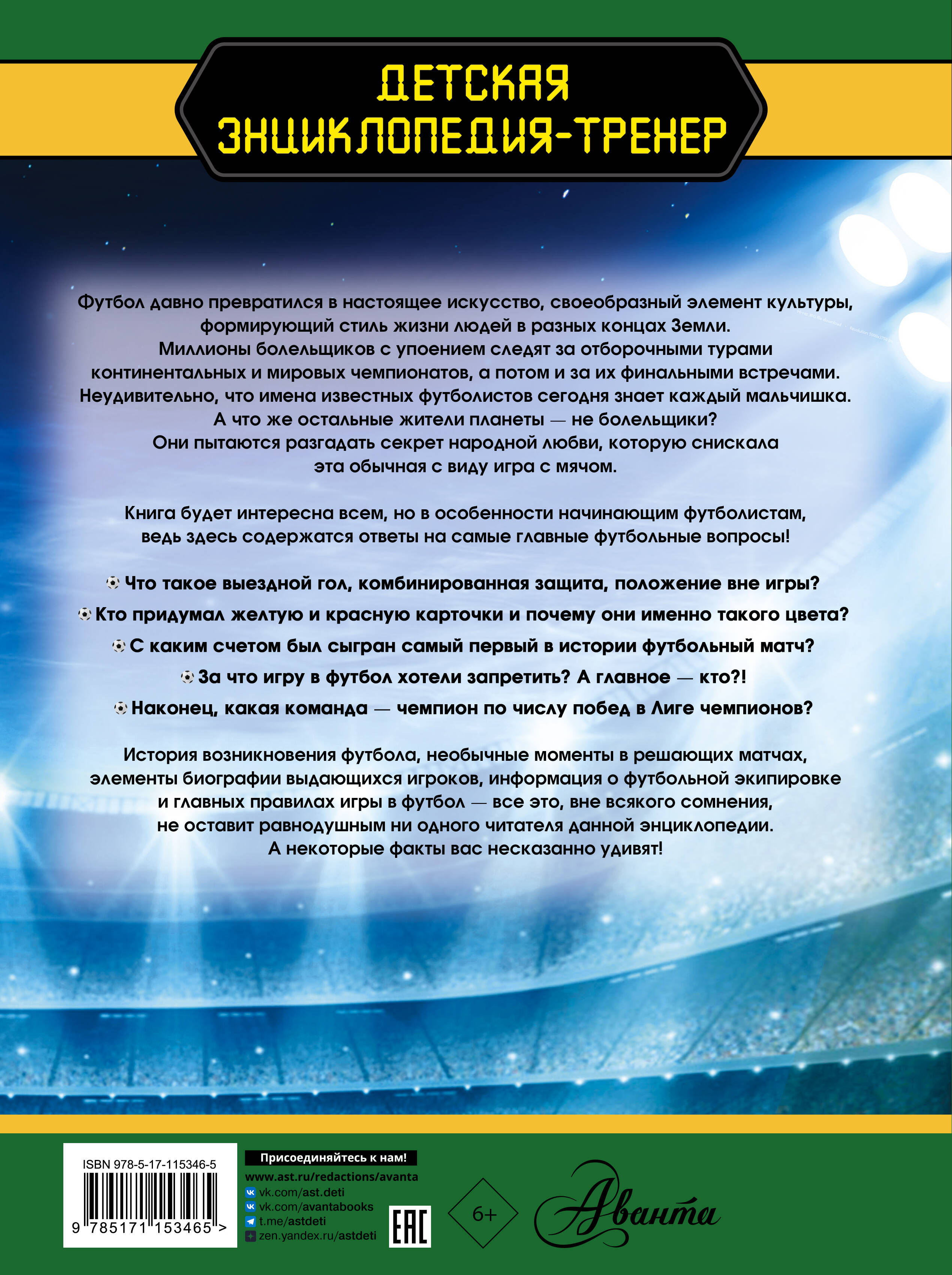 Издание рассказывает о самой популярной в мире спортивной игре - футболе: истории его возникновения, формировании правил, легендарных чемпионатах, лучших командах и выдающихся игроках. Книга научит правильно выбирать экипировку для участия в футбольном матче, познакомит с тактическими приемами и игровыми моментами, основными правилами и наказаниями за их нарушение, а также знаками судей. Разносторонняя информация, представленная на этих страницах, наглядные тактические схемы, фотографии и высказывания звезд мирового футбола заинтересуют абсолютно всех, но в особенности начинающих футболистов. Для среднего школьного возраста.| Издательство | ИЗДАТЕЛЬСТВО "АСТ" |
