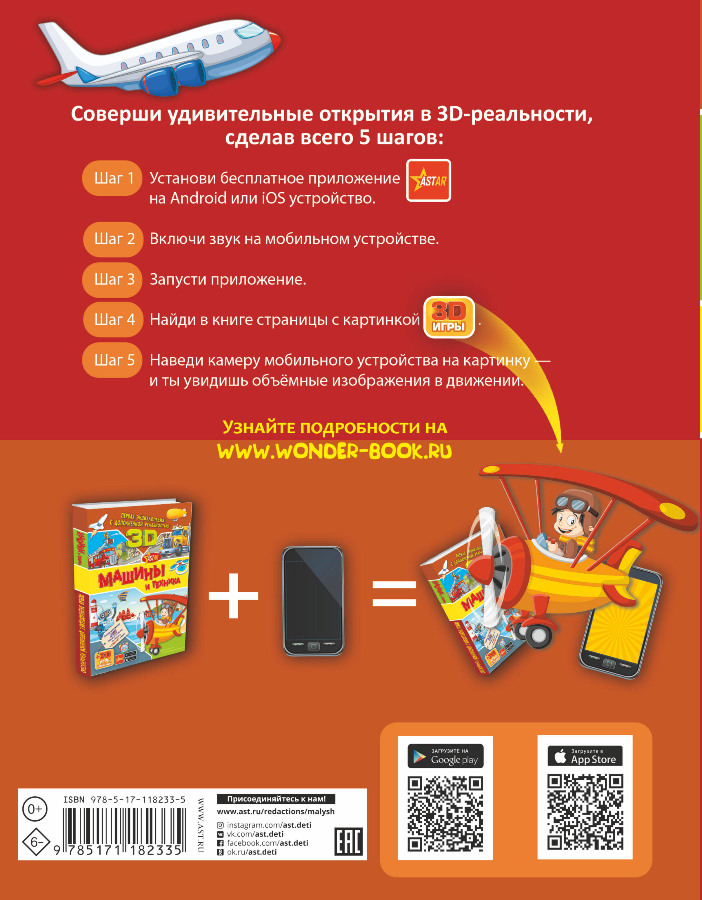 Это не просто книга о технике -- перед вами настоящая интерактивная энциклопедия! На ее страницах содержится множество полезных сведений о технических достижениях человечества: бытовых приборах, средствах связи, различных видах наземного, водного, воздушного и даже космического транспорта. А используя смартфон или планшет как своеобразный пульт управления, с этих страниц можно самому запускать ракеты, управлять вертолетом, наблюдать за плаванием субмарины и даже вызывать волны в море, чтобы посмотреть, как плавает корабль! И еще множество открытий, приключений и настоящих сюрпризов ожидает читателя этого познавательного 3D-издания. Для дошкольного возраста.| Издательство | ИЗДАТЕЛЬСТВО "АСТ" |