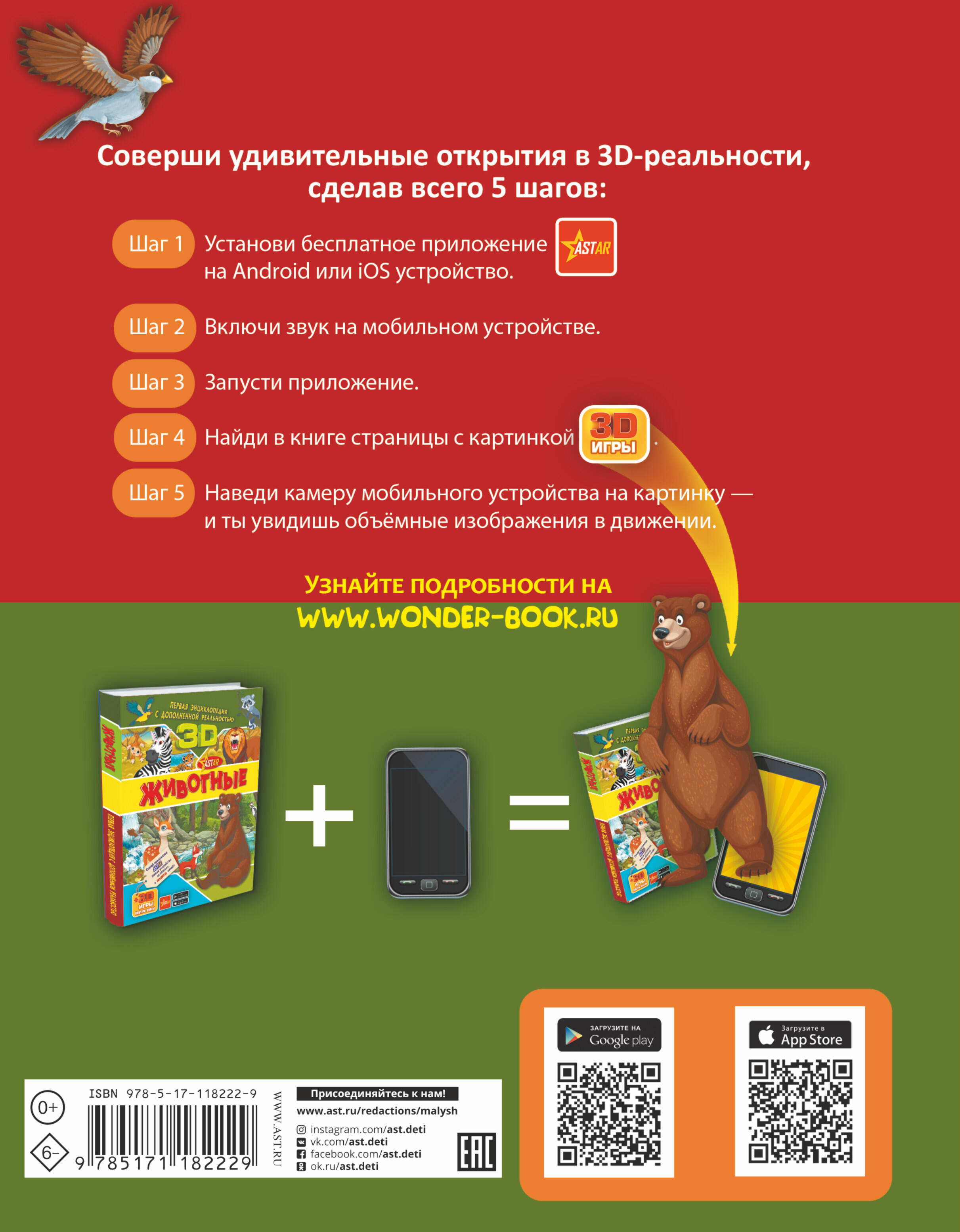 Это не простая книга о животных, а самая настоящая интерактивная энциклопедия! Выполнив несложные инструкции, здесь можно покормить крокодила, послушать голос царя зверей - льва, полюбоваться прыжками веселых дельфинов и помочь орлу перелететь через высокие горы. Одно движение руки, и картинки оживают! Издание знакомит с животными, которые обитают в жаркой Африке, на северном полюсе, в диких джунглях или, наоборот, совсем рядом с человеком. Книга дает каждому возможность читать, смотреть объемные картинки в движении и самому управлять 3D-реальностью, совершая массу удивительных открытий. Для дошкольного возраста.| Издательство | ИЗДАТЕЛЬСТВО "АСТ" |