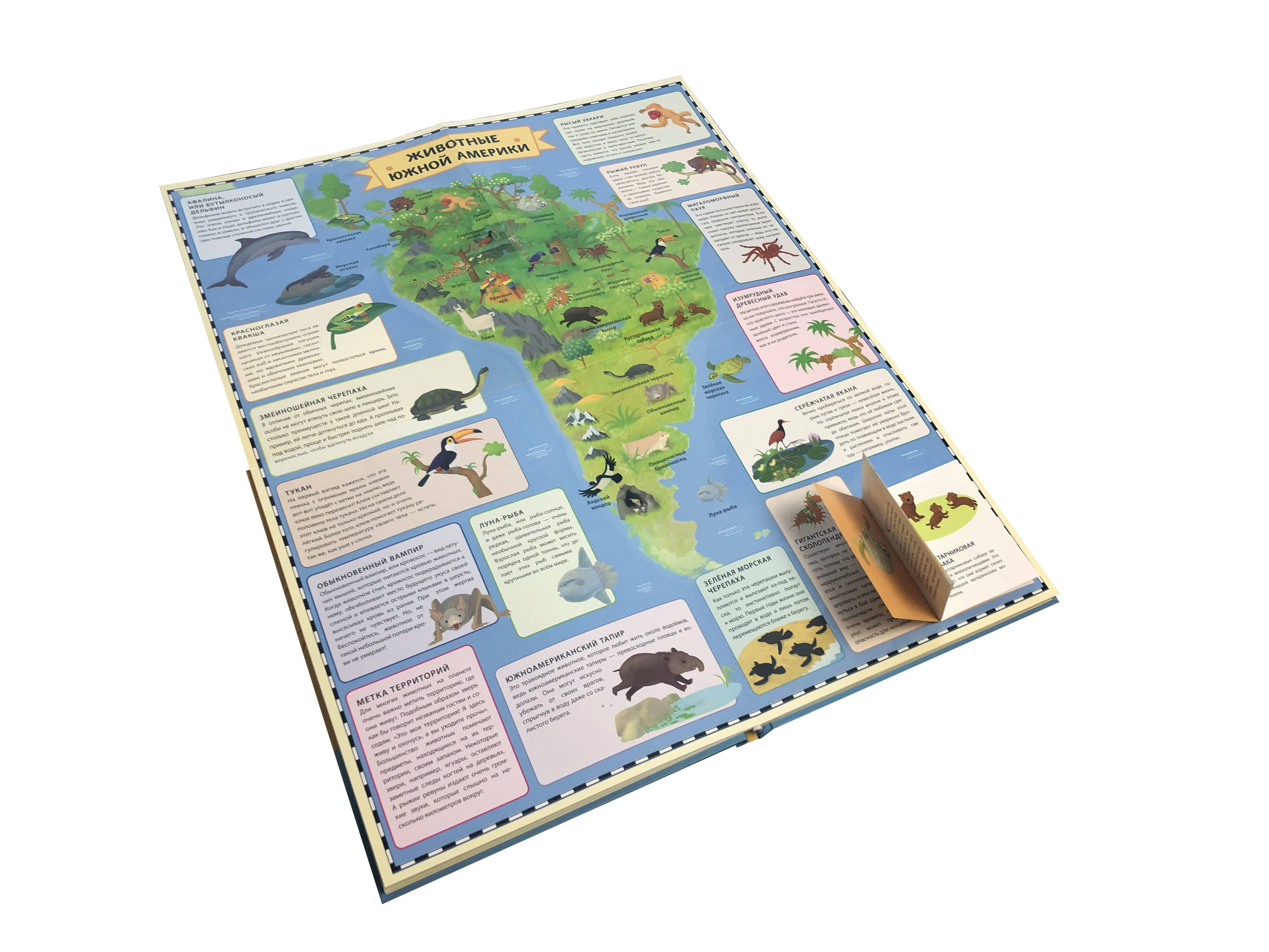 Этот познавательный атлас о самой интересной фауне нашей планеты в два раза больше, чем кажется на первый взгляд! В нём в два раза больше животных: тебя ждут большие откидные развороты и маленькие книжки внутри книги. Огромные красочные карты с местами обитания животных, занимательные факты о том, как устроен животный мир каждого континента, яркие иллюстрации, отображающие всё разнообразие животных, птиц, насекомых и рыб, и многое другое - раскрой все секреты этой книги! Фишки книги: • Оптимальная книга для первого знакомства ребёнка с животным миром планеты! • 7 откидных разворотов с картами континентов - вдвое больше увлекательной информации об их фауне! • Более 200 видов животных на ярких картинках! • 9 дополнительных книжек с интересной информацией о животных со всего света!| Издательство | ООО "Издательство "Эксмо" |