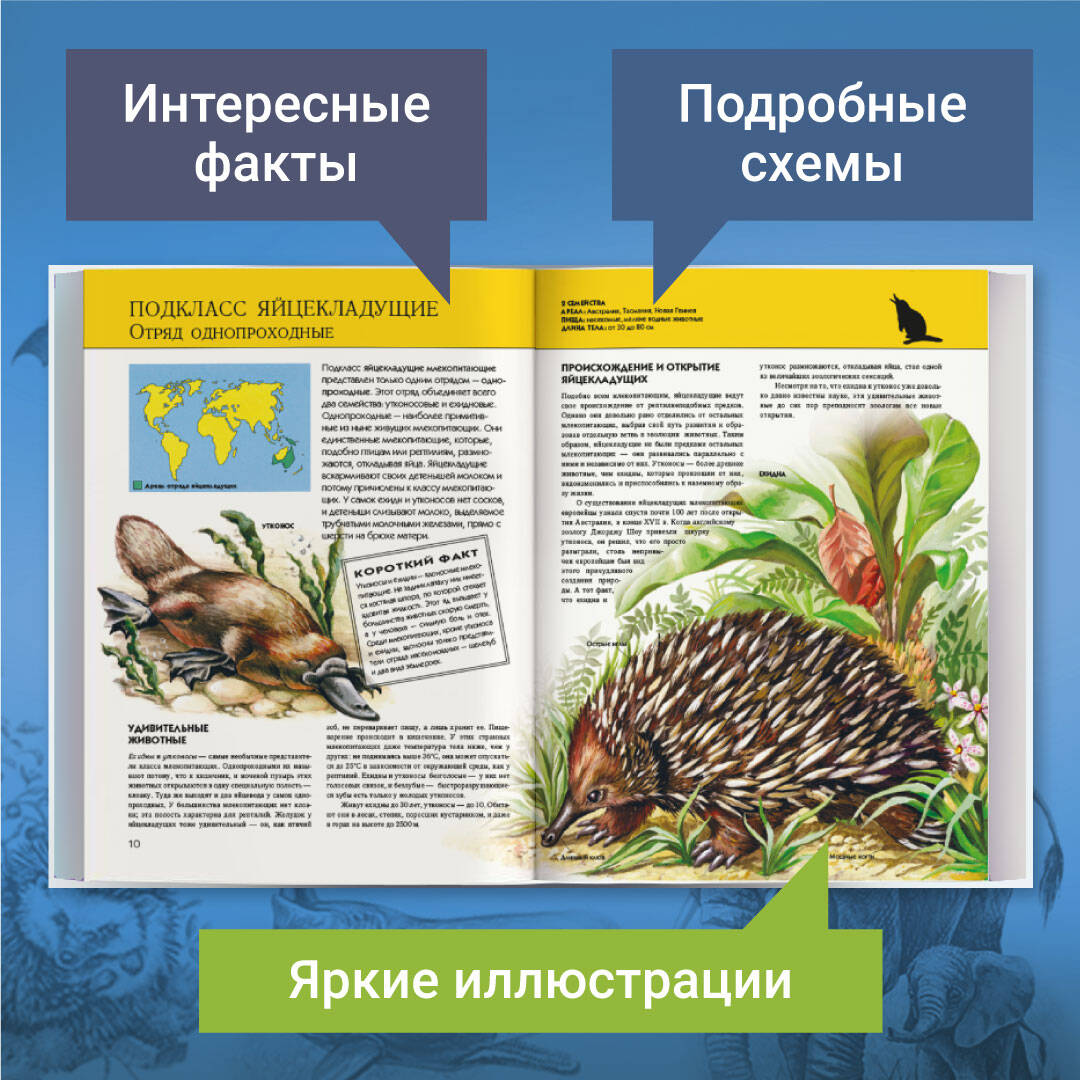 Одна из самых популярных тем познавательной литературы! В этой энциклопедии читателей ждут невероятные факты о животных нашей планеты. Её автор и иллюстратор - Юлия Школьник, педагог и профессиональный художник, в чьих книгах единство текста и иллюстраций создаёт неповторимую атмосферу - расскажет о классификации животных, их особенностях, а также даст ответы на самые интересные и необычные вопросы: • Кто из братьев наших меньших является чемпионом по лени? • Где обитает водяная лошадь? • Кто строит подземные города? • Как выглядит бинтурог? • Чем прославилась капибара? Рекомендуем энциклопедию школьникам как дополнительное чтение и справочное пособие. Книга станет замечательным подарком по любому поводу для взрослых и детей!| Издательство | ООО "Издательство "Эксмо" |
