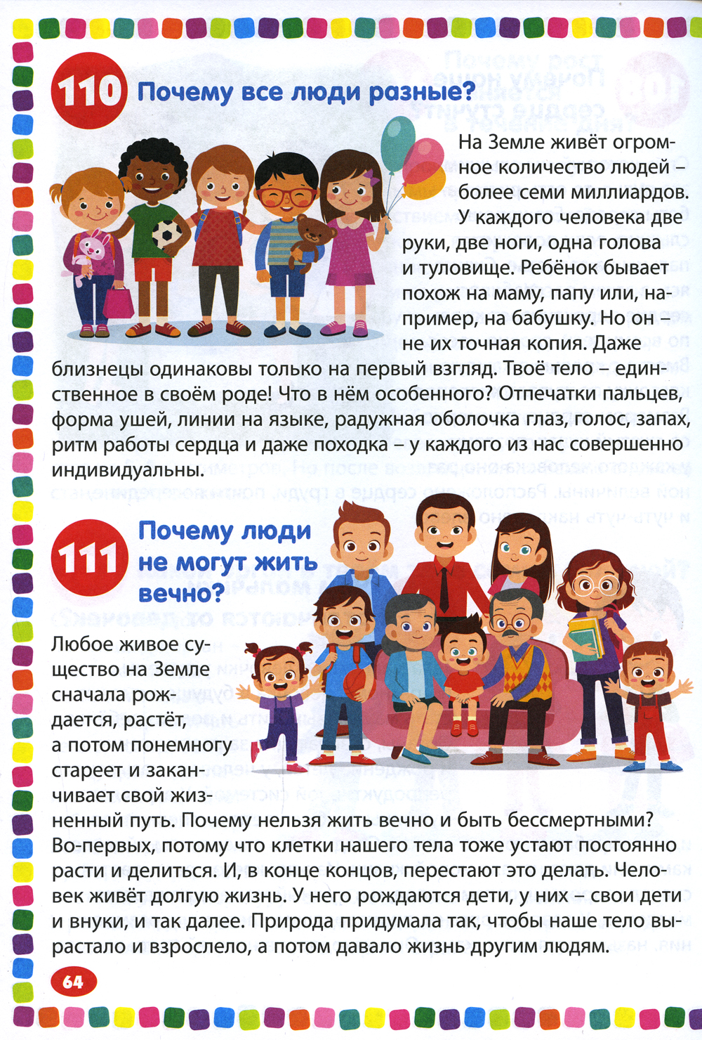 Ваш малыш с самого момента рождения быстро развивается и стремится познать окружающий мир. И вы, конечно, помните, как нетерпеливо ждали первых слов от своего ребёнка, но, когда он задаёт сотни вопросов за день, - взрослым становится не до шуток. Не отчаивайтесь - в нашей иллюстрированной энциклопедии вы найдёте понятные и краткие ответы на самые разные вопросы ваших детей: