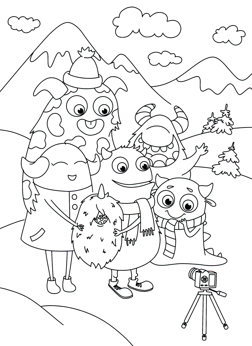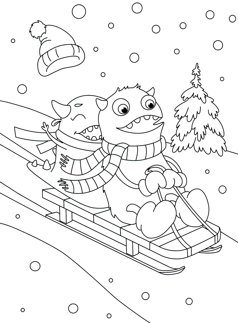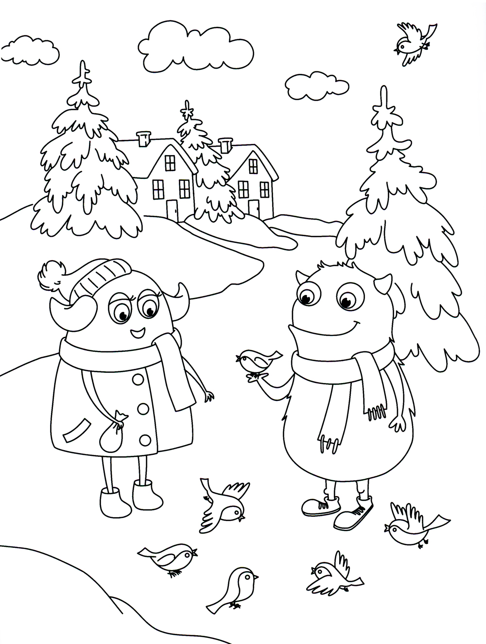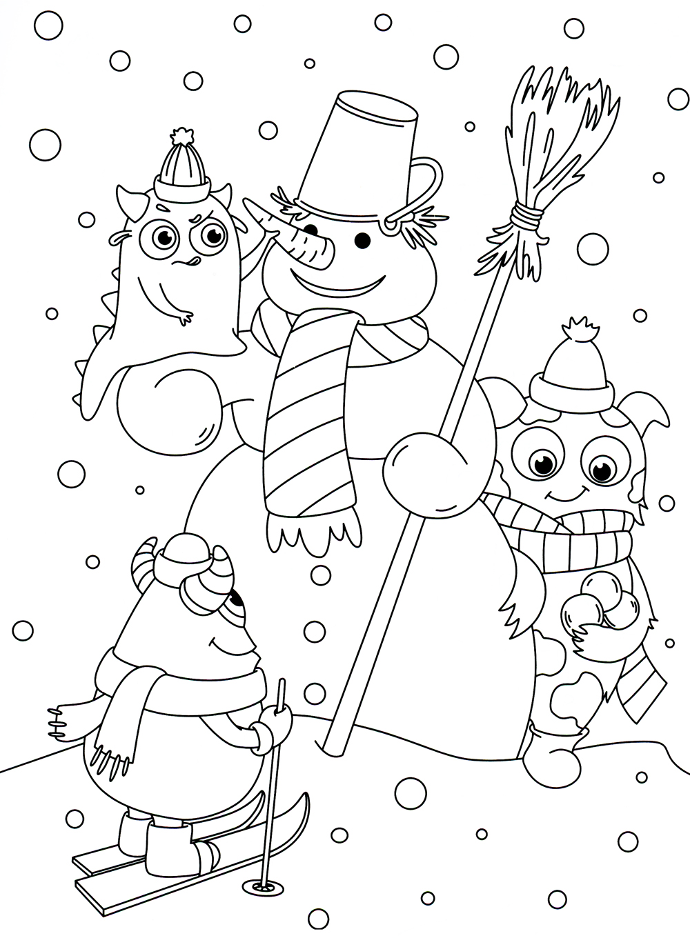 Монстрики и зимние развлечения: книжка-раскраска с наклейками